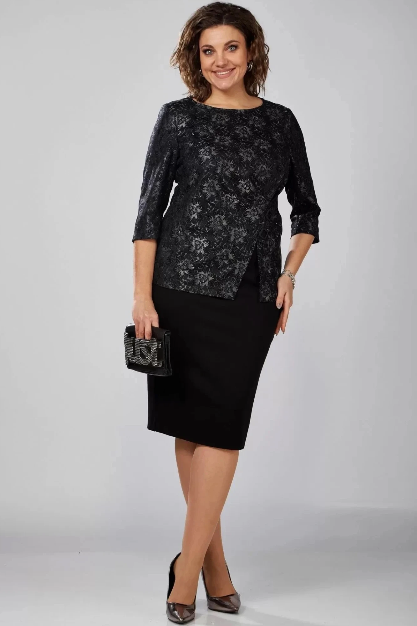 Юбочный костюм Anna Majewska 1533 черный, вышивка двойка