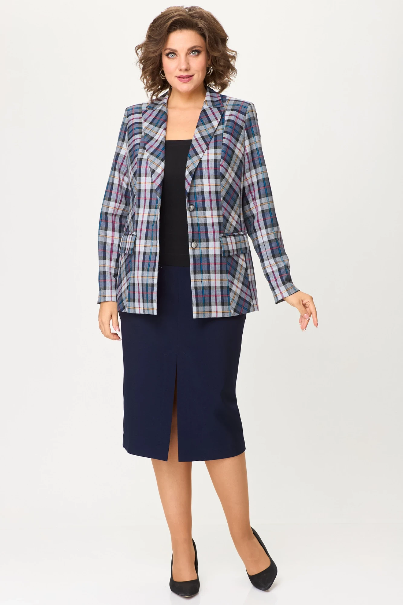 Юбочный костюм БелЭльСтиль 412+597 синяя клетка + синий однотон