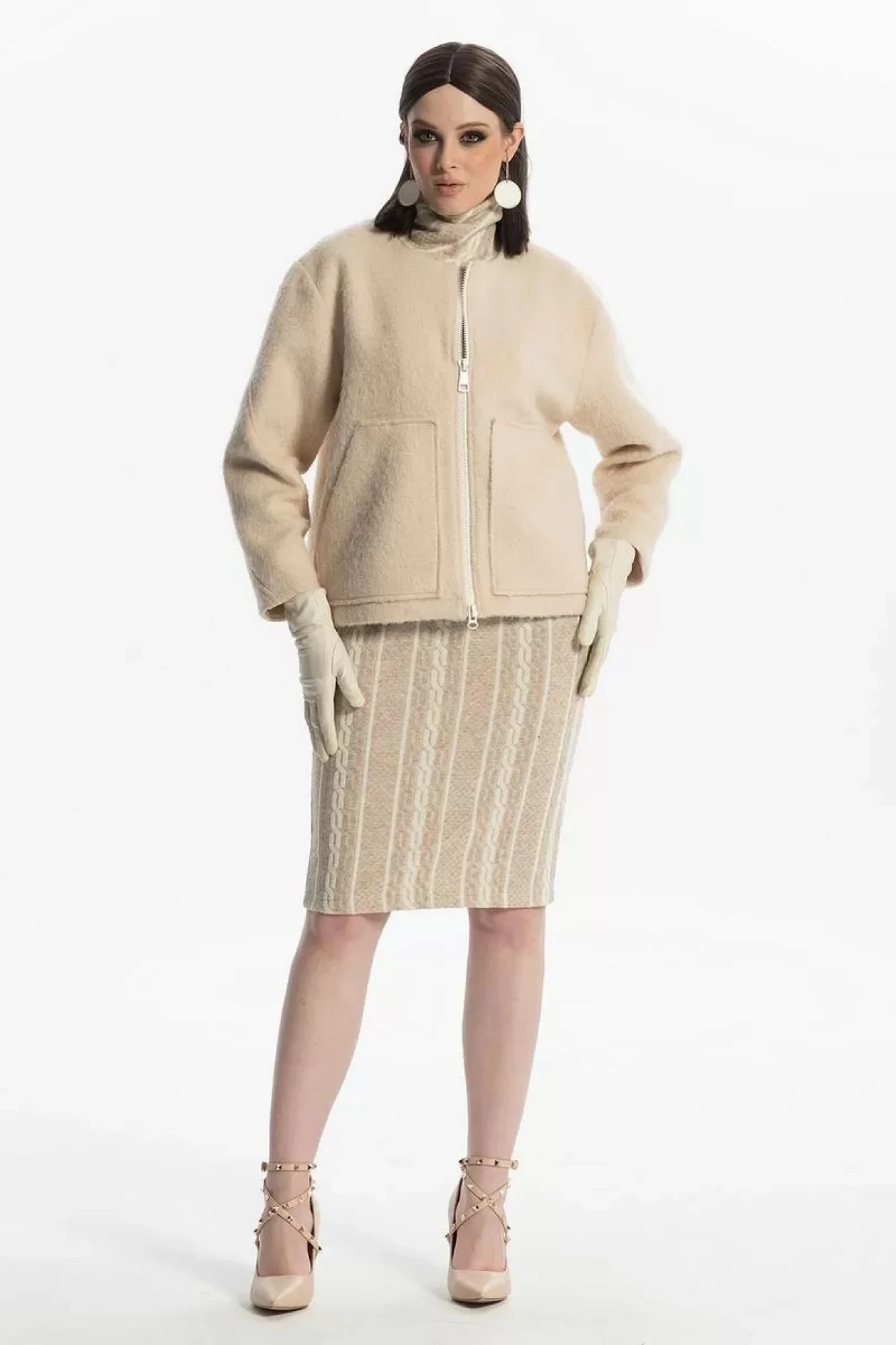 Юбочный костюм Diva 1506 белый-беж двойка