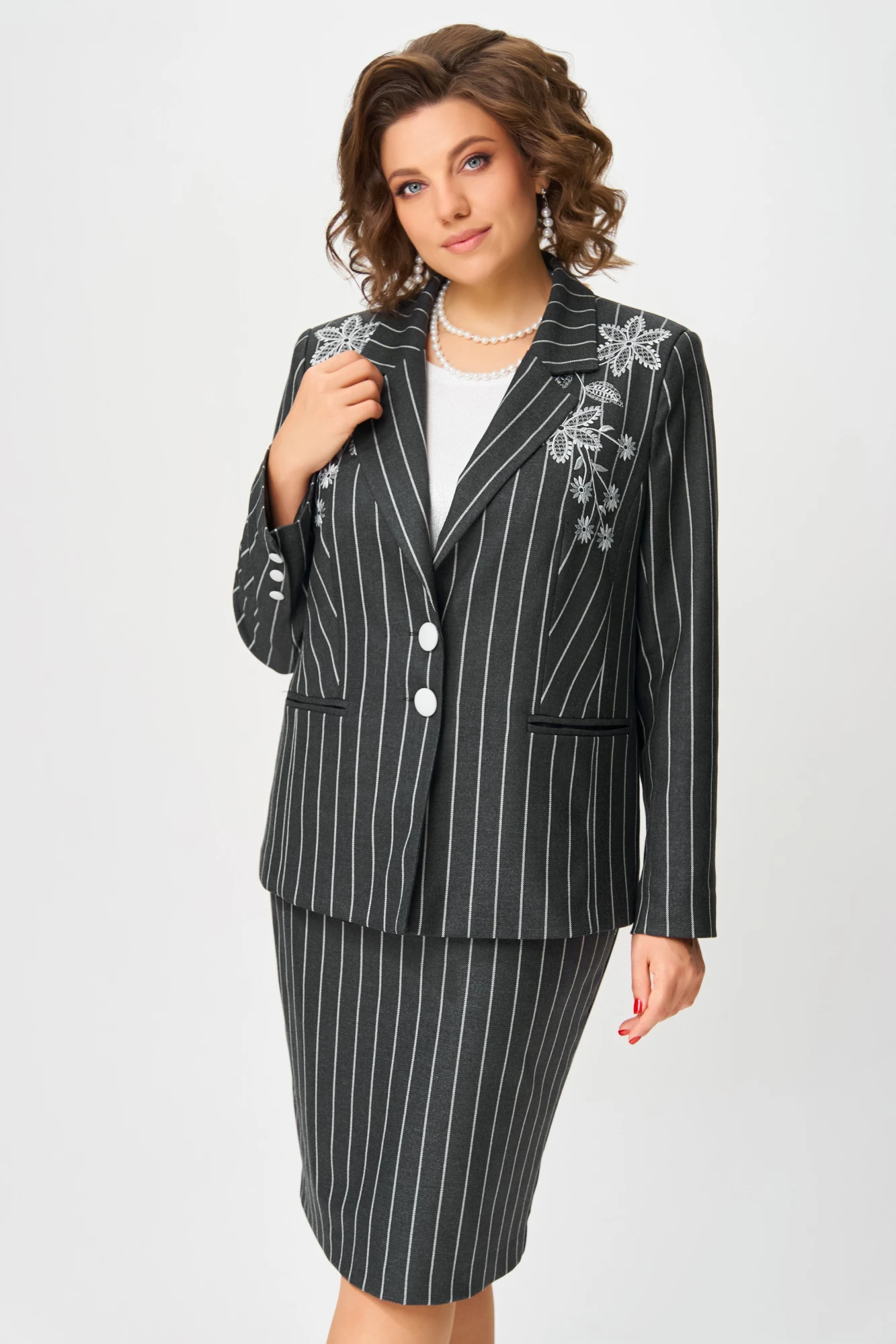 В целом, комплект «Веяна» — это синтез практичности и праздничности, в котором полоска задаёт стройность, а фактурные ткани и деликатные элементы раскрывают красоту в каждом движении. Он подойдёт и для торжественных событий, и для утончённых будней, где хочется быть собой — но чуточку прекраснее."