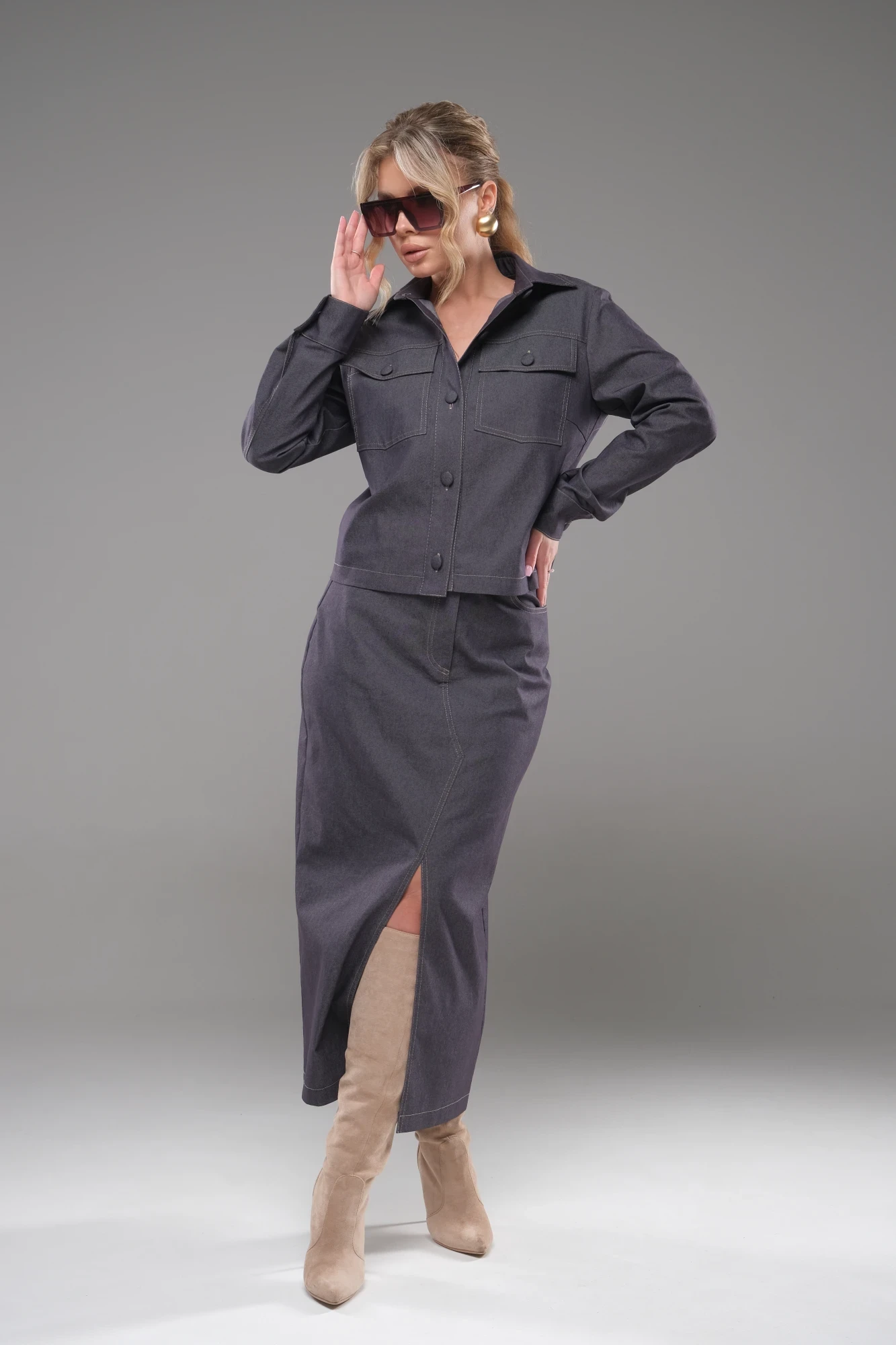 Юбочный костюм Галеан-стиль 943 чёрный двойка