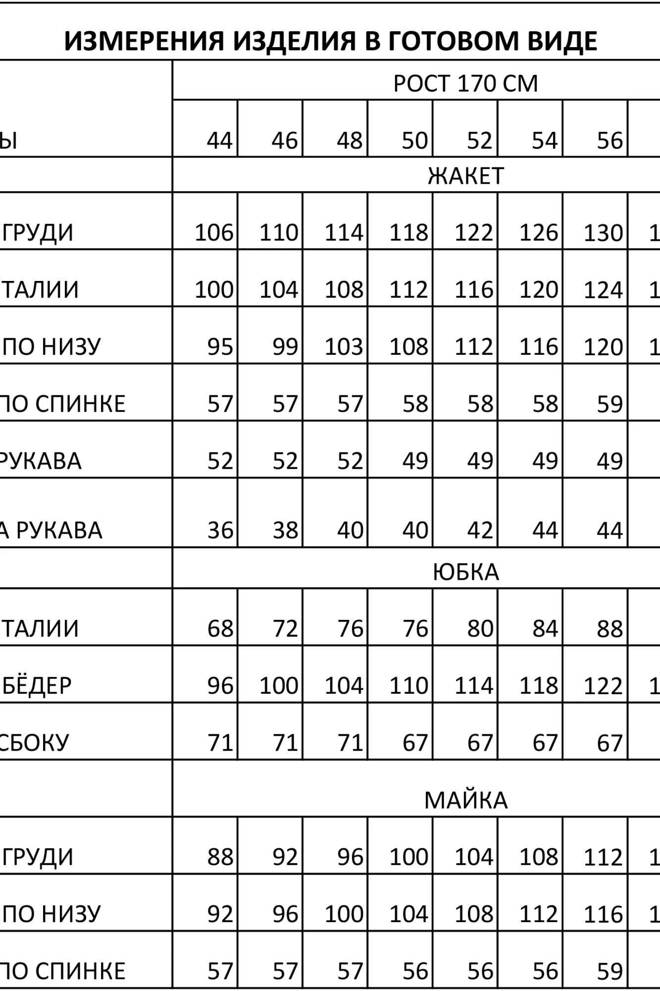 длина рукава в базовом размере, см: 52 (размеры 44-48), 49 (размеры 50-60)