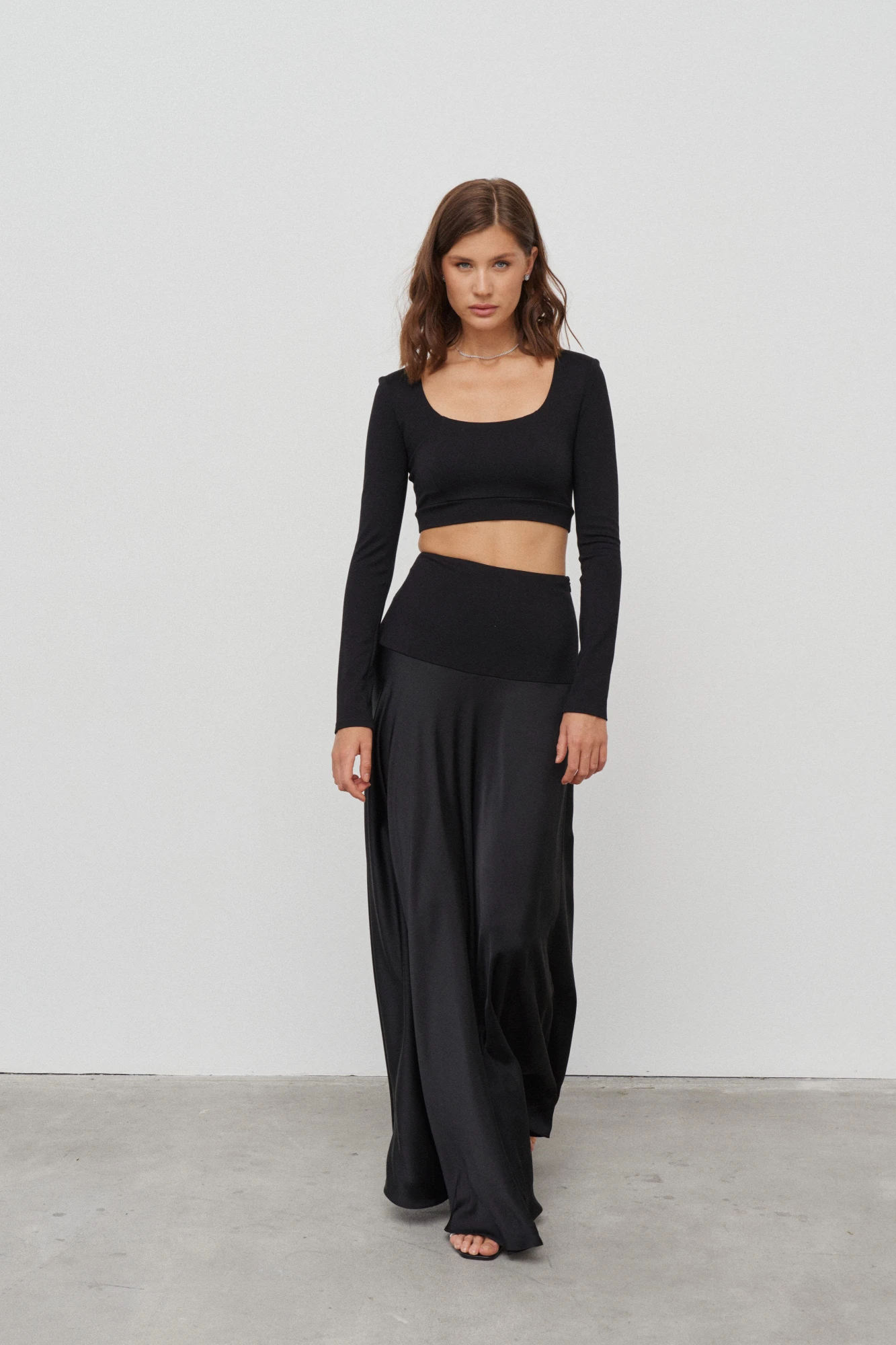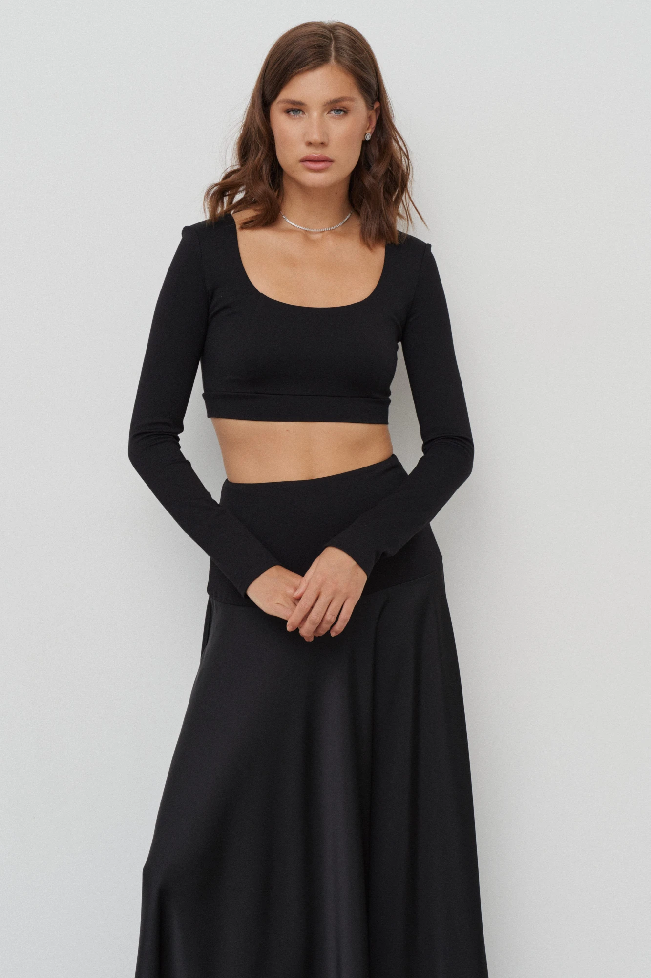 Топ из трикотажного полотна прилегающего силуэта с длинным рукавом и вырезом каре спереди и сзади.