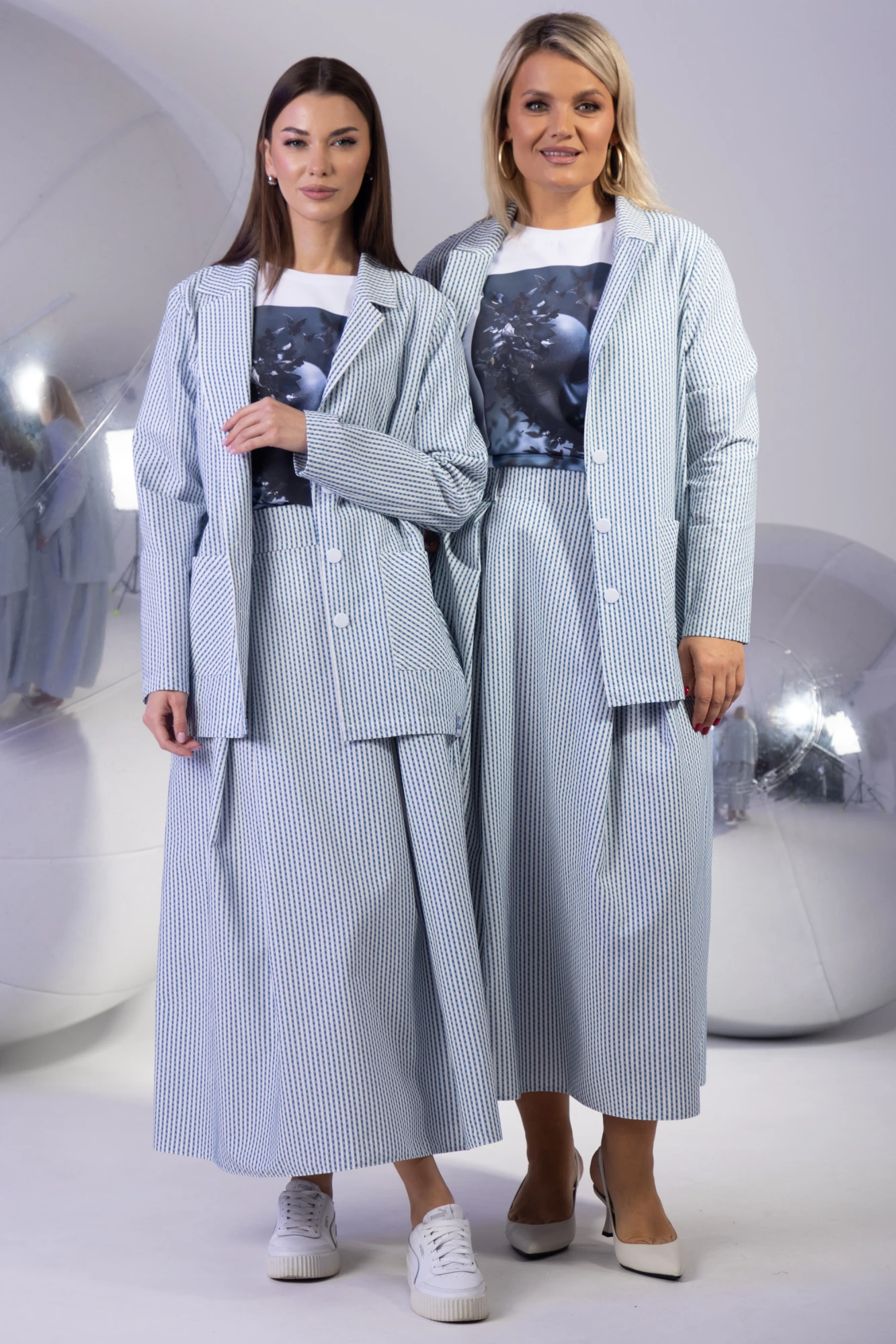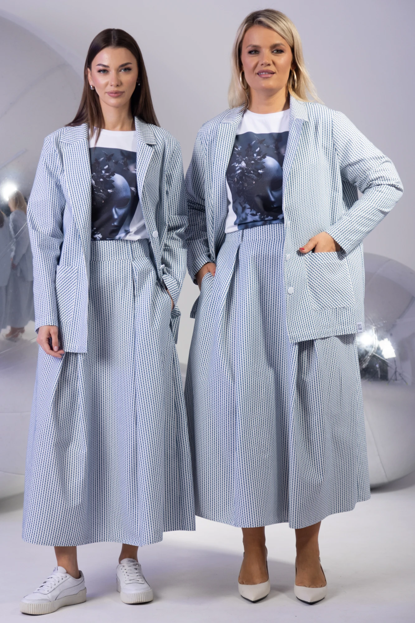 Этот костюм — универсальное решение для офиса, прогулок или мероприятий. Комбинируйте жакет и юбку вместе для элегантного ансамбля или сочетайте с другими базовыми вещами, создавая многогранные образы. Хлопок с эластаном легко гладится, не теряет форму после стирки и сохраняет насыщенный цвет даже при частом использовании.
