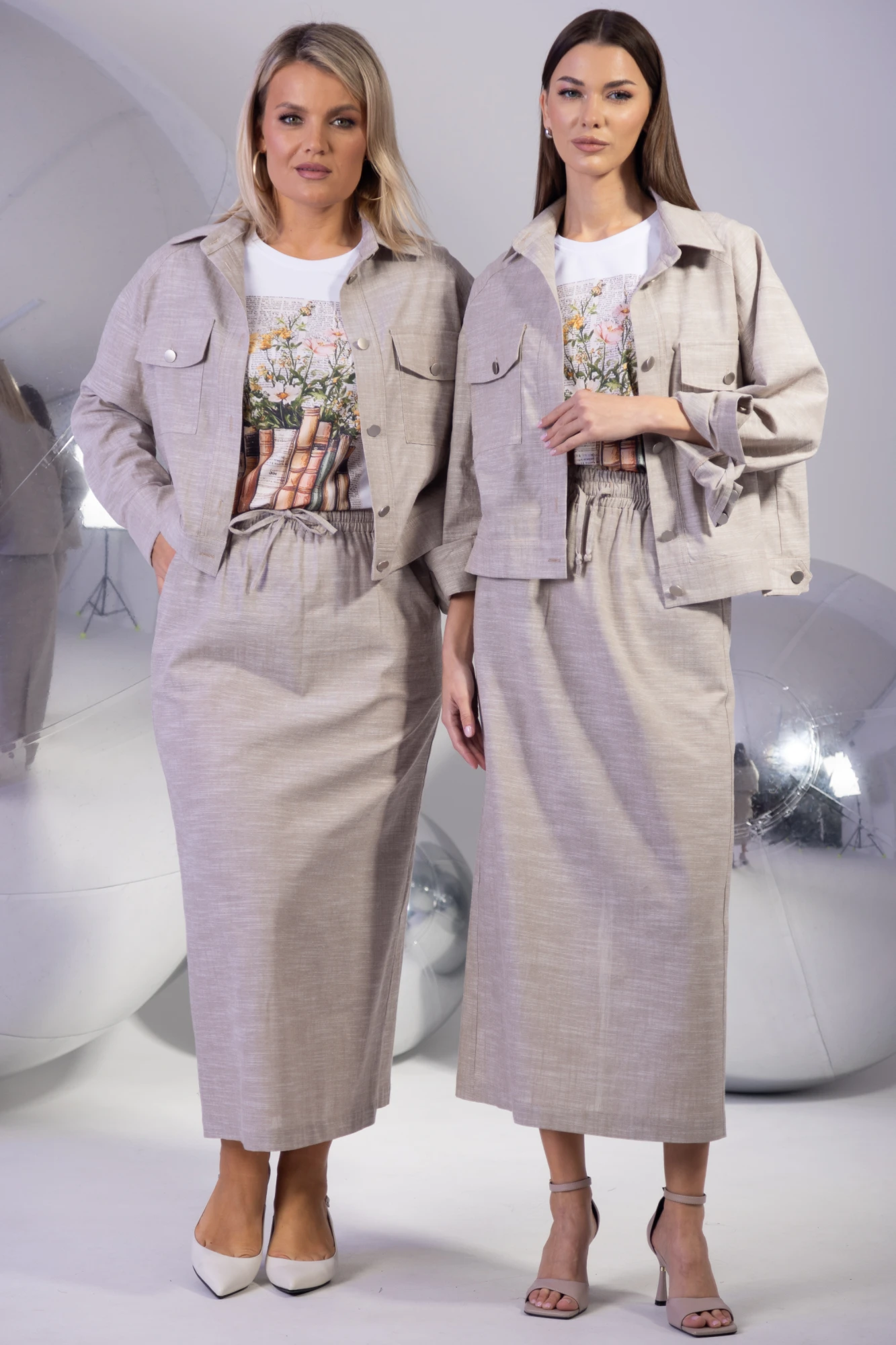 Представляем стильный льняной костюм, который станет жемчужиной вашего летнего гардероба! Этот гармоничный комплект сочетает модный укороченный жакет и длинную юбку с разрезом, создавая идеальный баланс между утончённостью и практичностью.