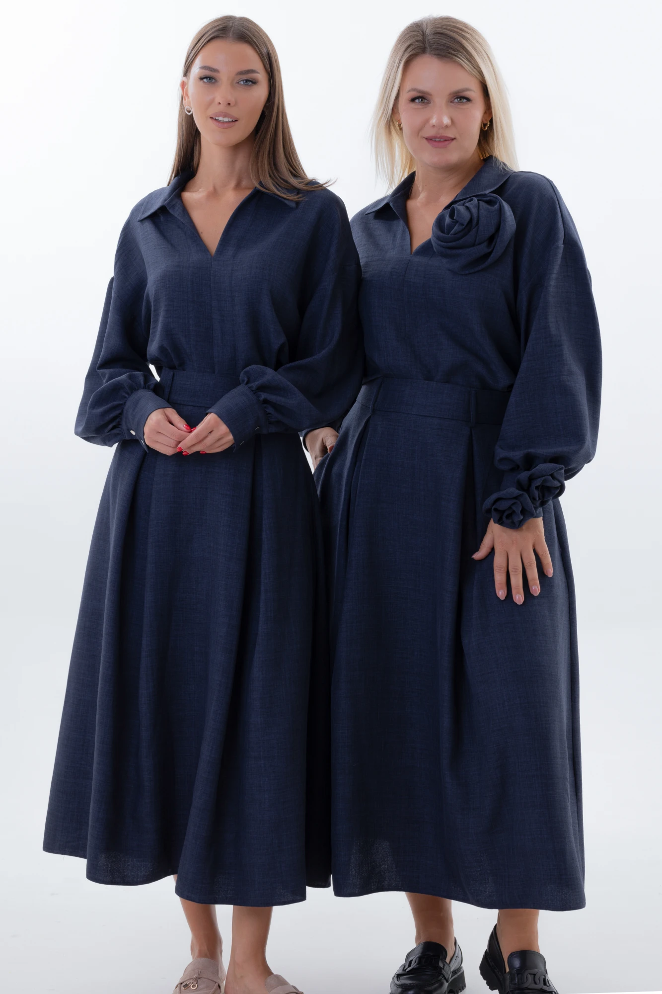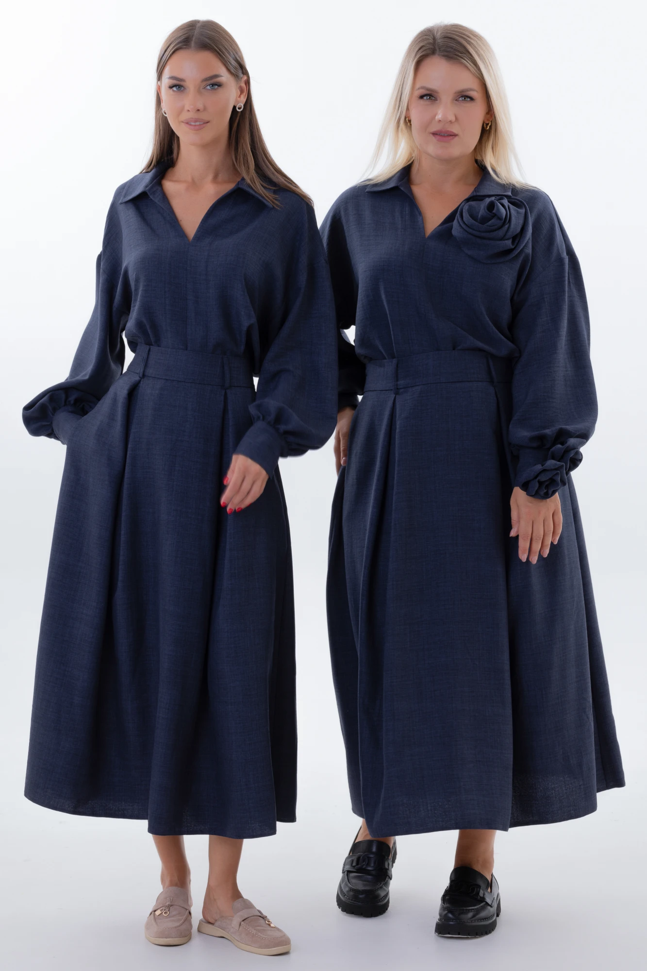 Kivvi Wear представляет идеальный дуэт, где современный шик встречается с непревзойденным комфортом. Блуза свободного кроя и удлиненная юбка-трапеция — это воплощение утонченной эстетики и свободы самовыражения. Каждая деталь этого ансамбля продумана для создания гармоничного и целостного образа.