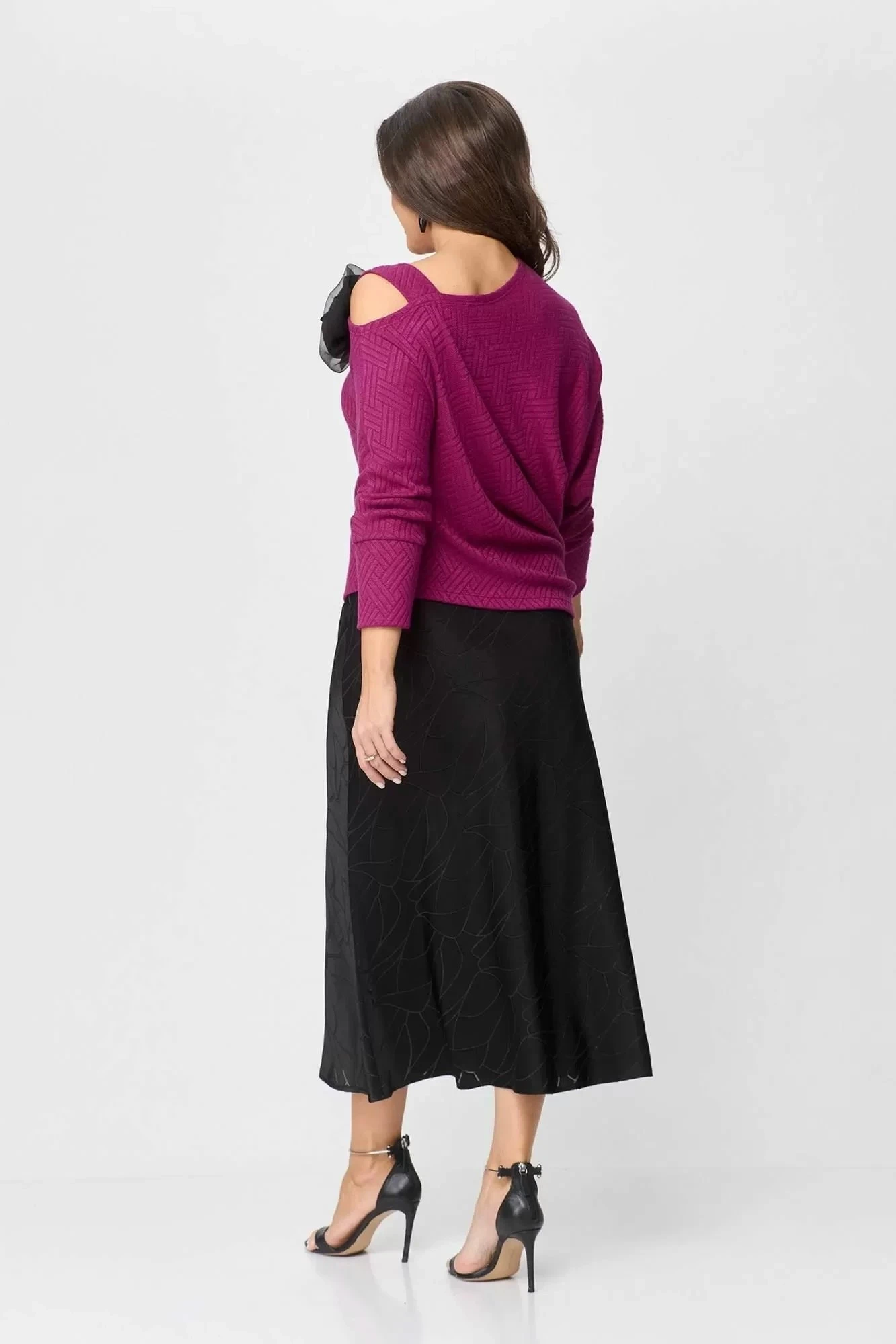 создает мягкую драпировку по правому боковому шву. Юбка из