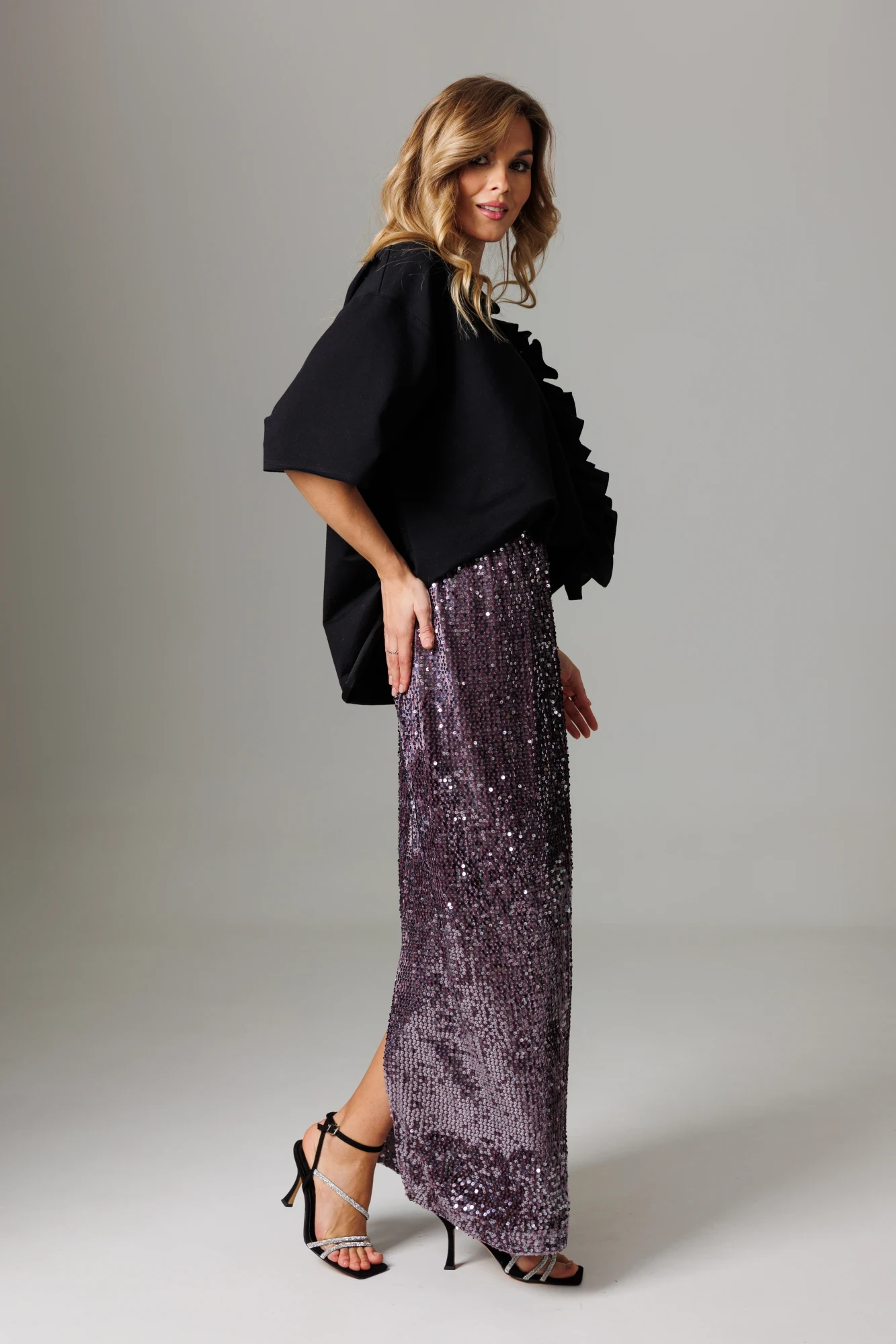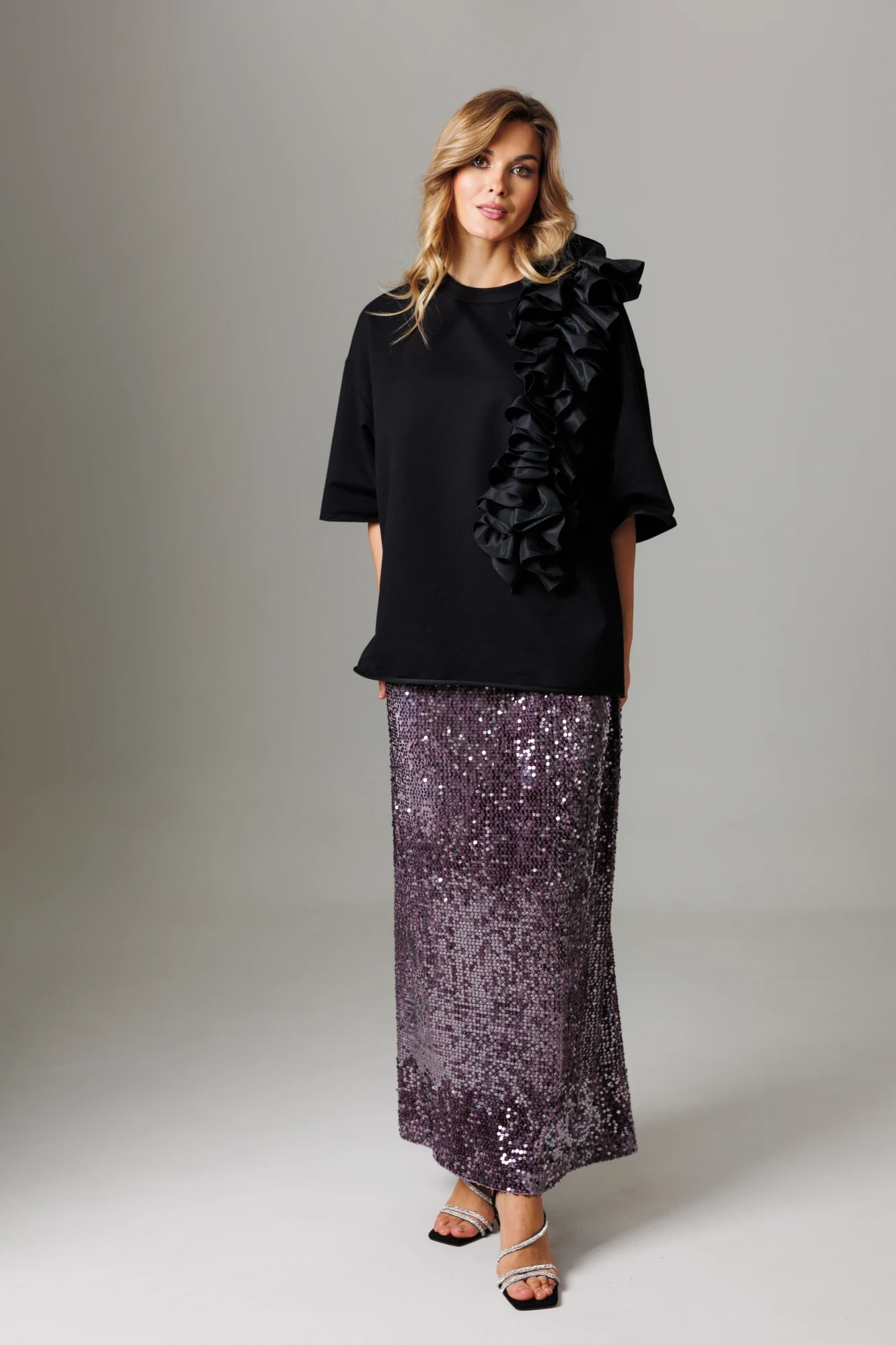 Юбочный костюм Ларс Стиль 1032 черный, лавандовый двойка