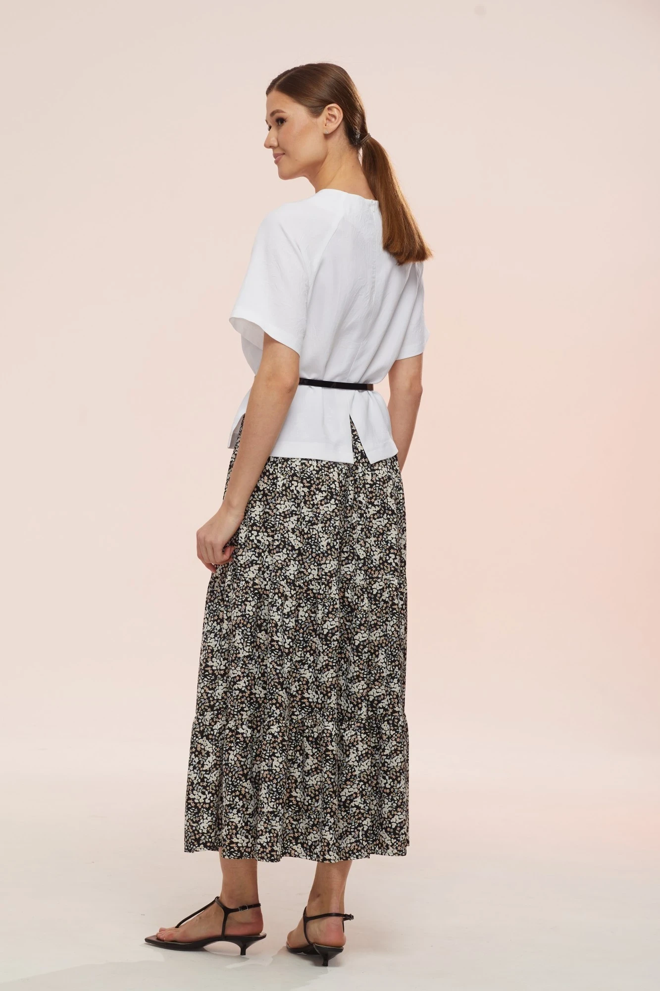 Юбочный костюм Ларс Стиль 758 белый, черно-бежевый принт