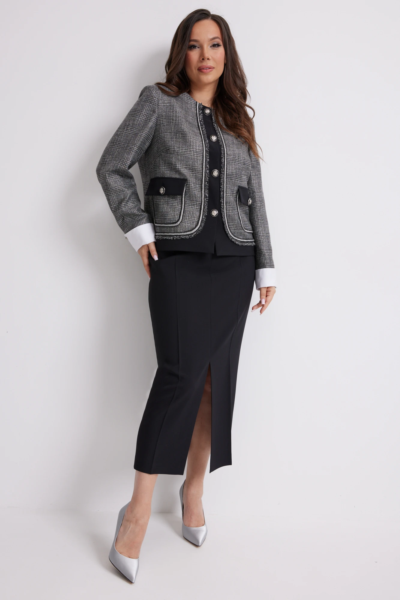 Юбочный костюм Магия Моды 2637 серый+черный двойка