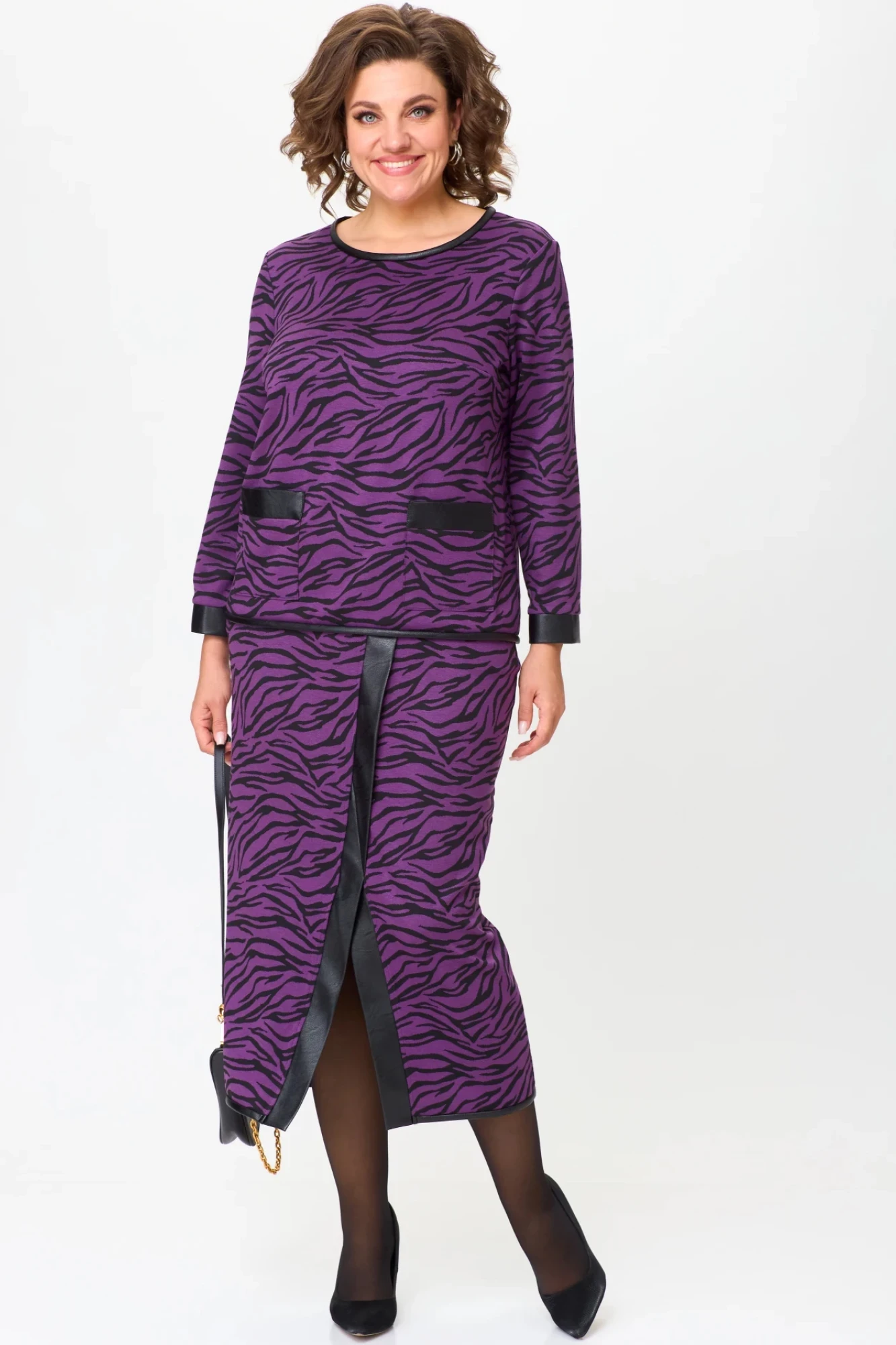 Юбочный костюм Michel Chic 1394 фиолетовый принт