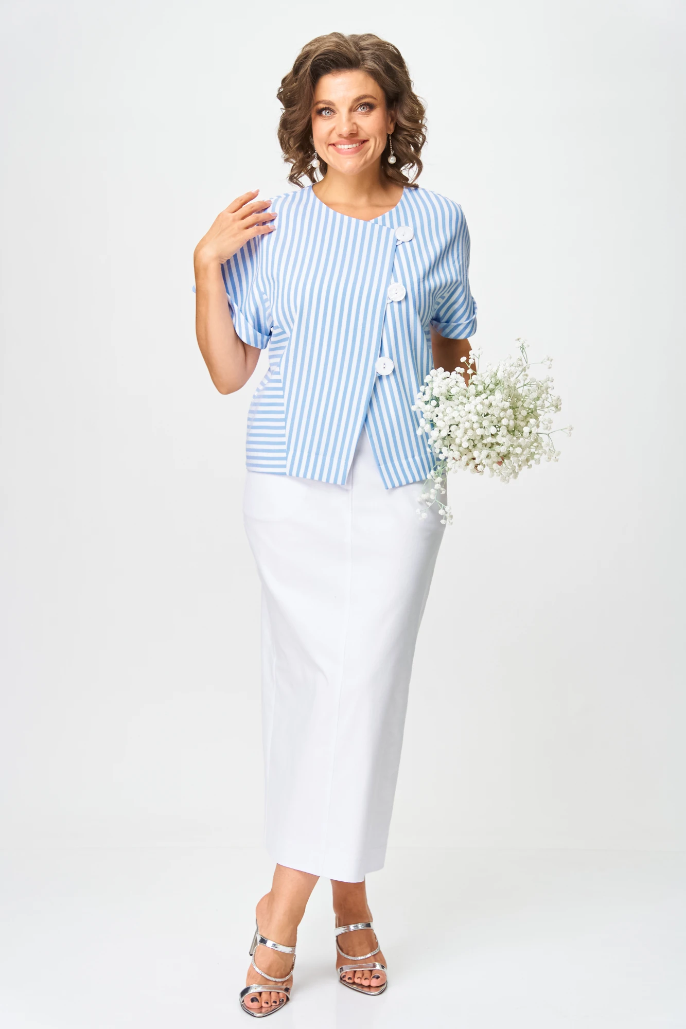 Юбочный костюм Michel Chic 1422 белый, полоска двойка