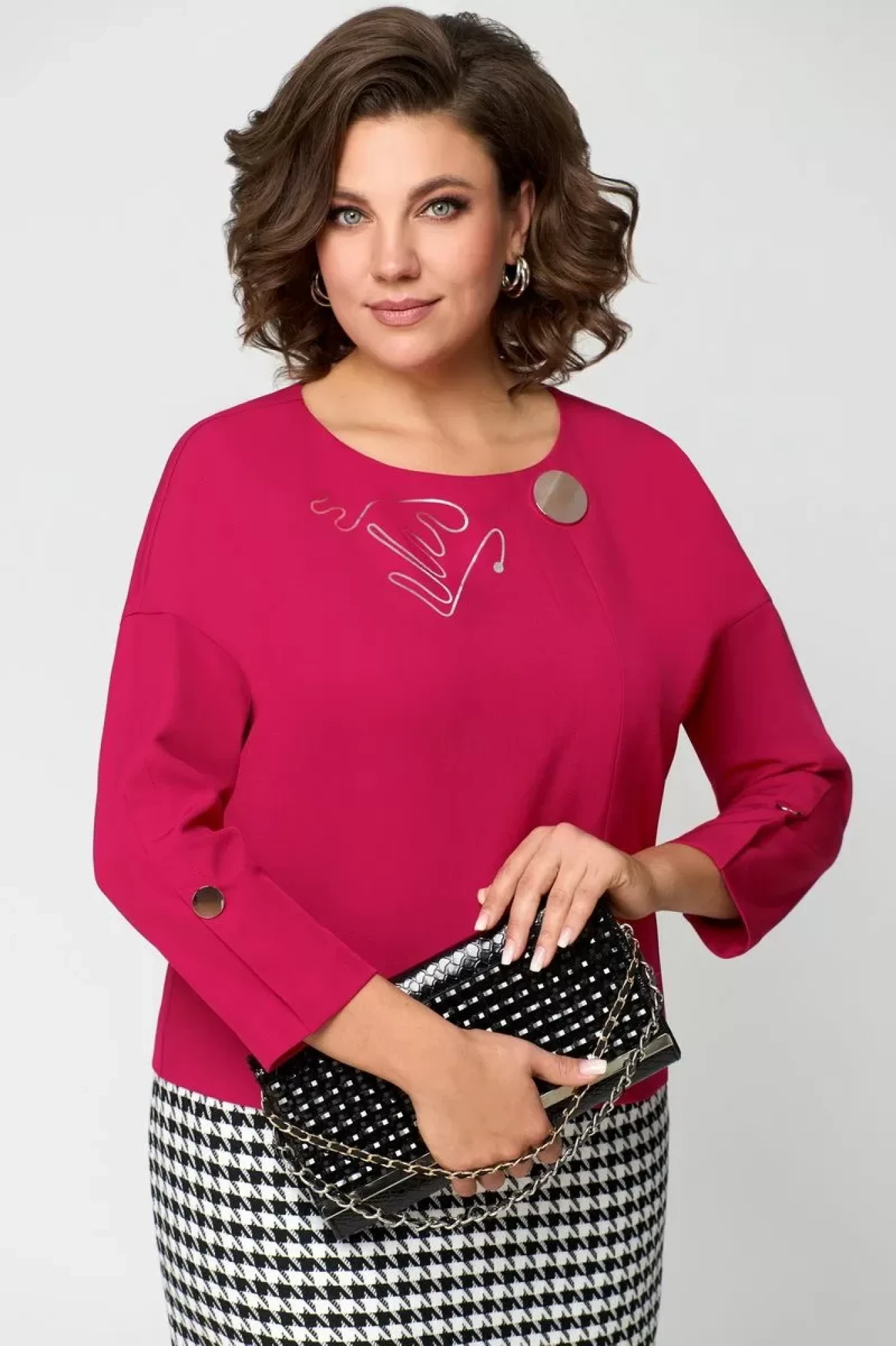 Юбочный костюм Мишель Стиль 1157 малиновый, черно-белый