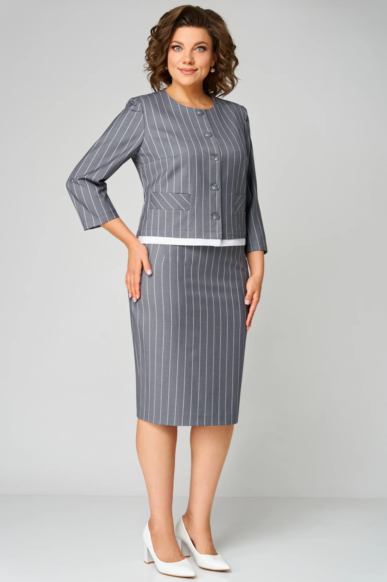 Юбочный костюм Мишель Стиль 1299 серый двойка