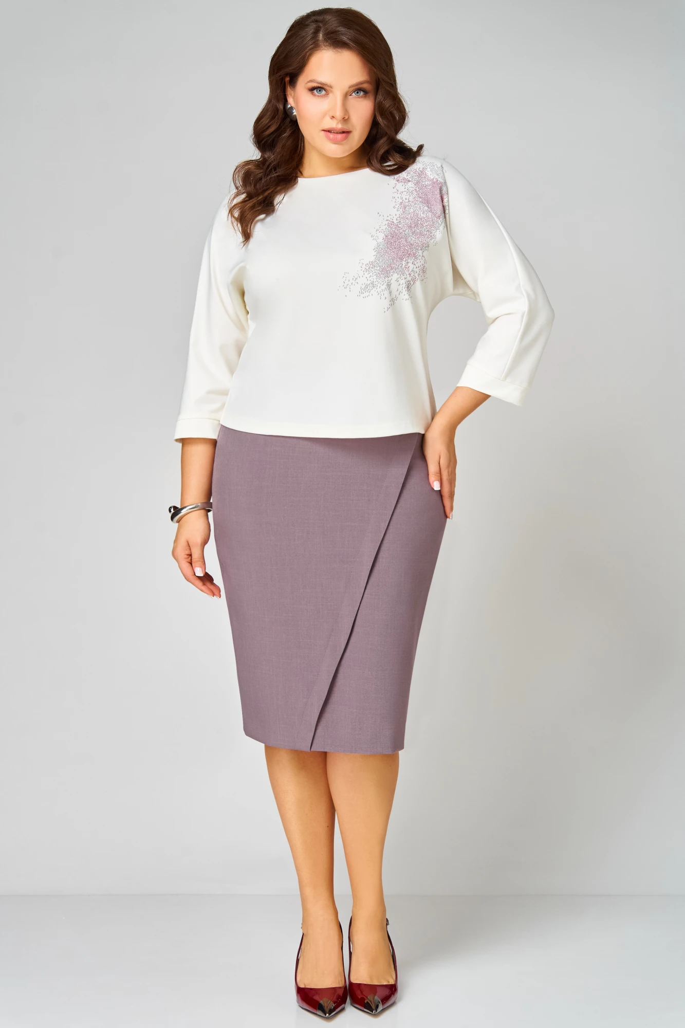 Юбочный костюм Мишель Стиль 1340 молочно-кофейный двойка