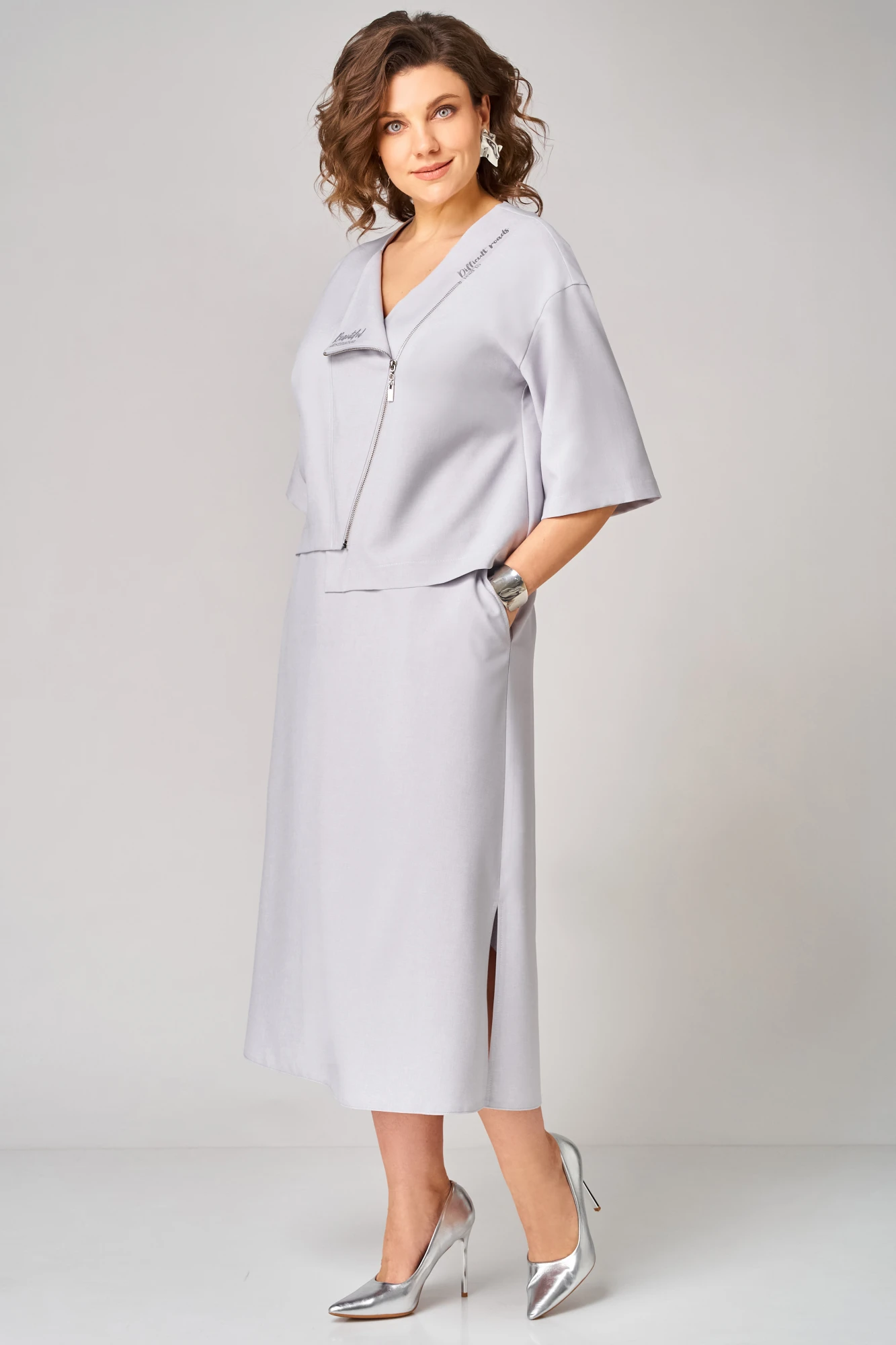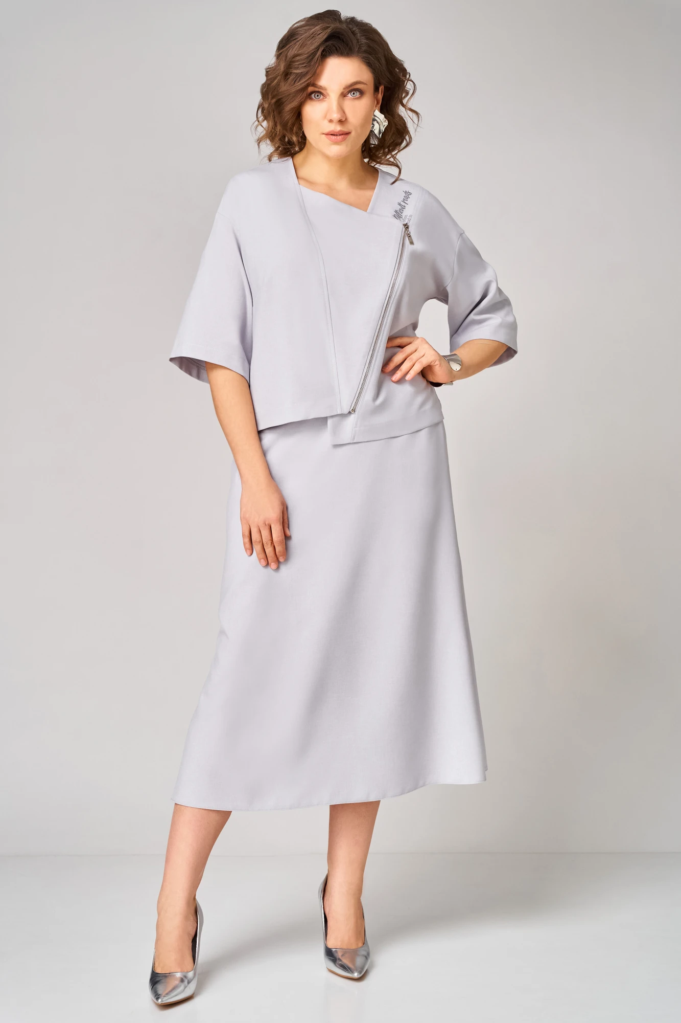 Юбочный костюм Мишель Стиль 1368 серый двойка