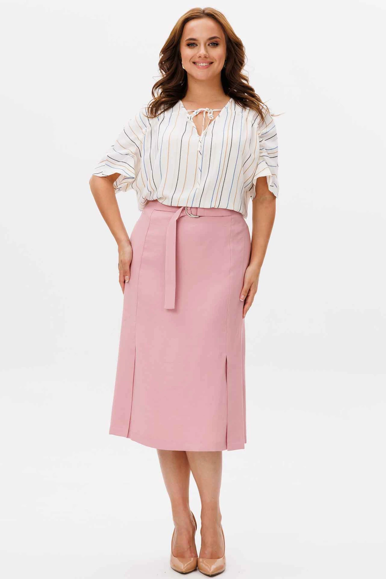 Юбочный костюм MisLana 6772 молочный/розовый двойка