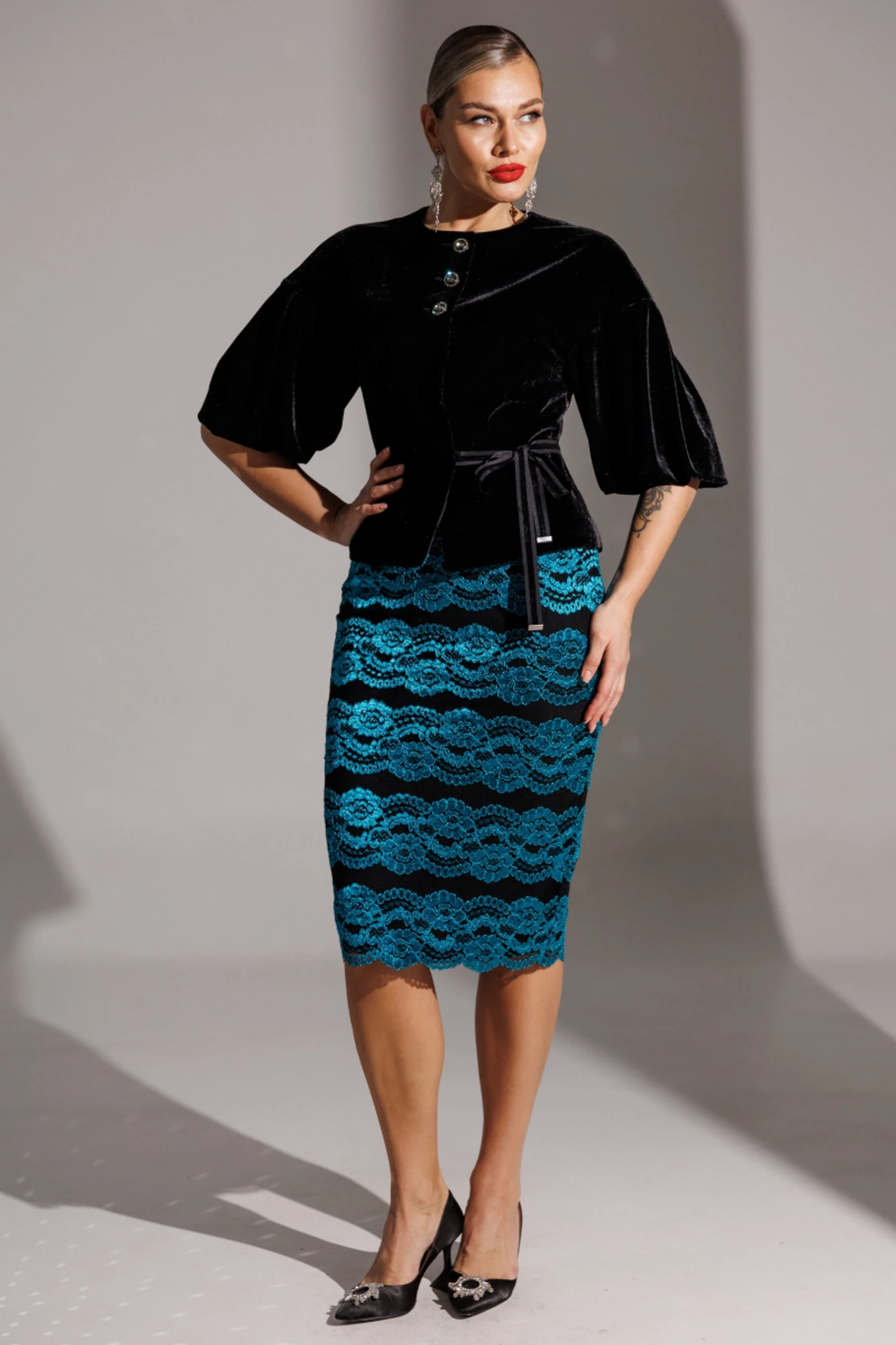 Юбочный костюм Мода-Юрс 25-2623 черный_бирюза