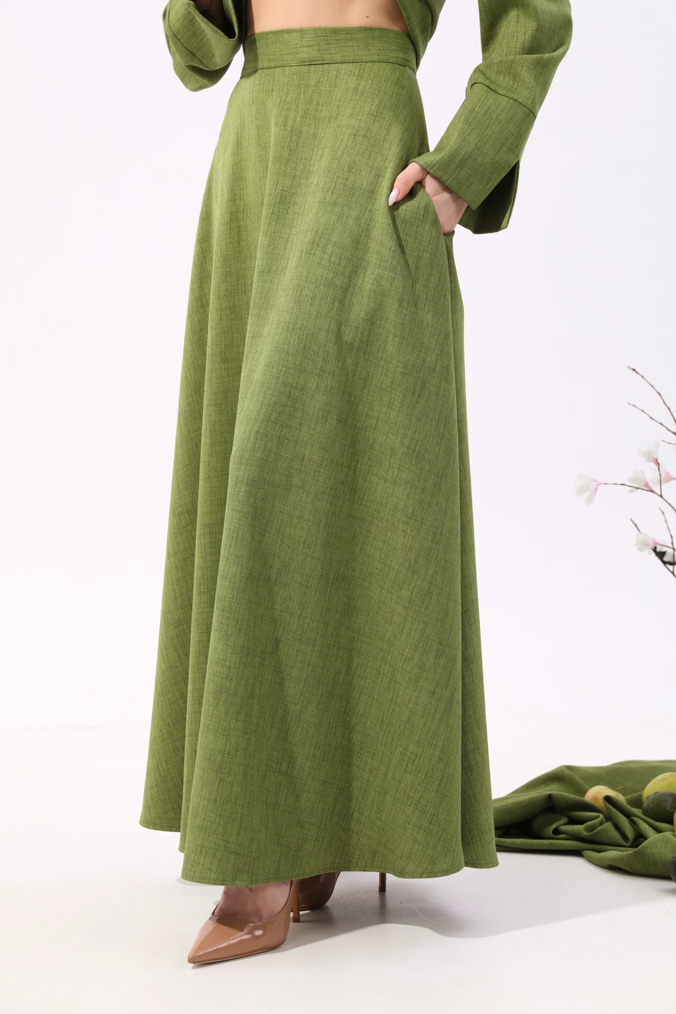 Юбочный костюм NikVa 917-4 зелень двойка