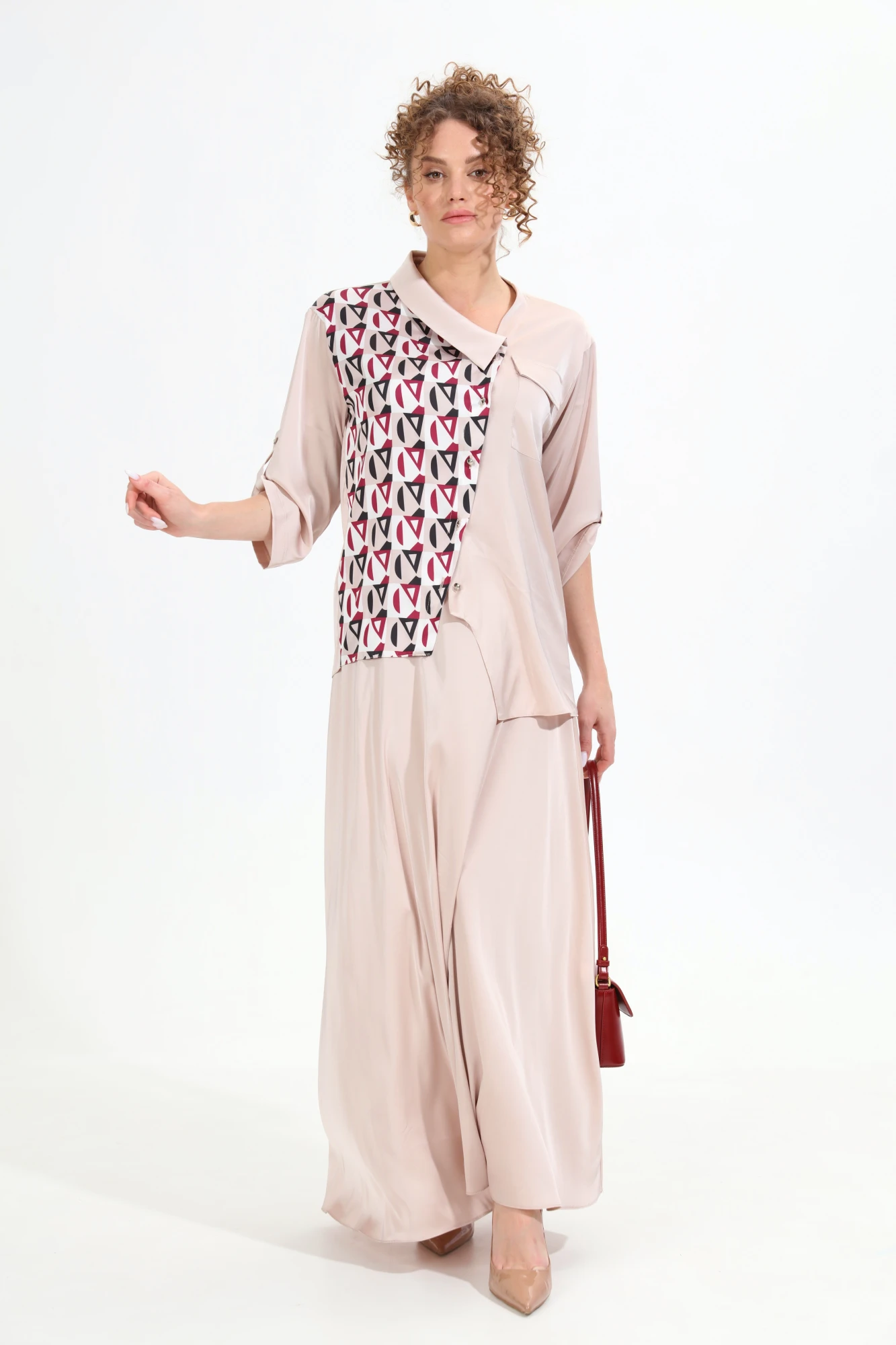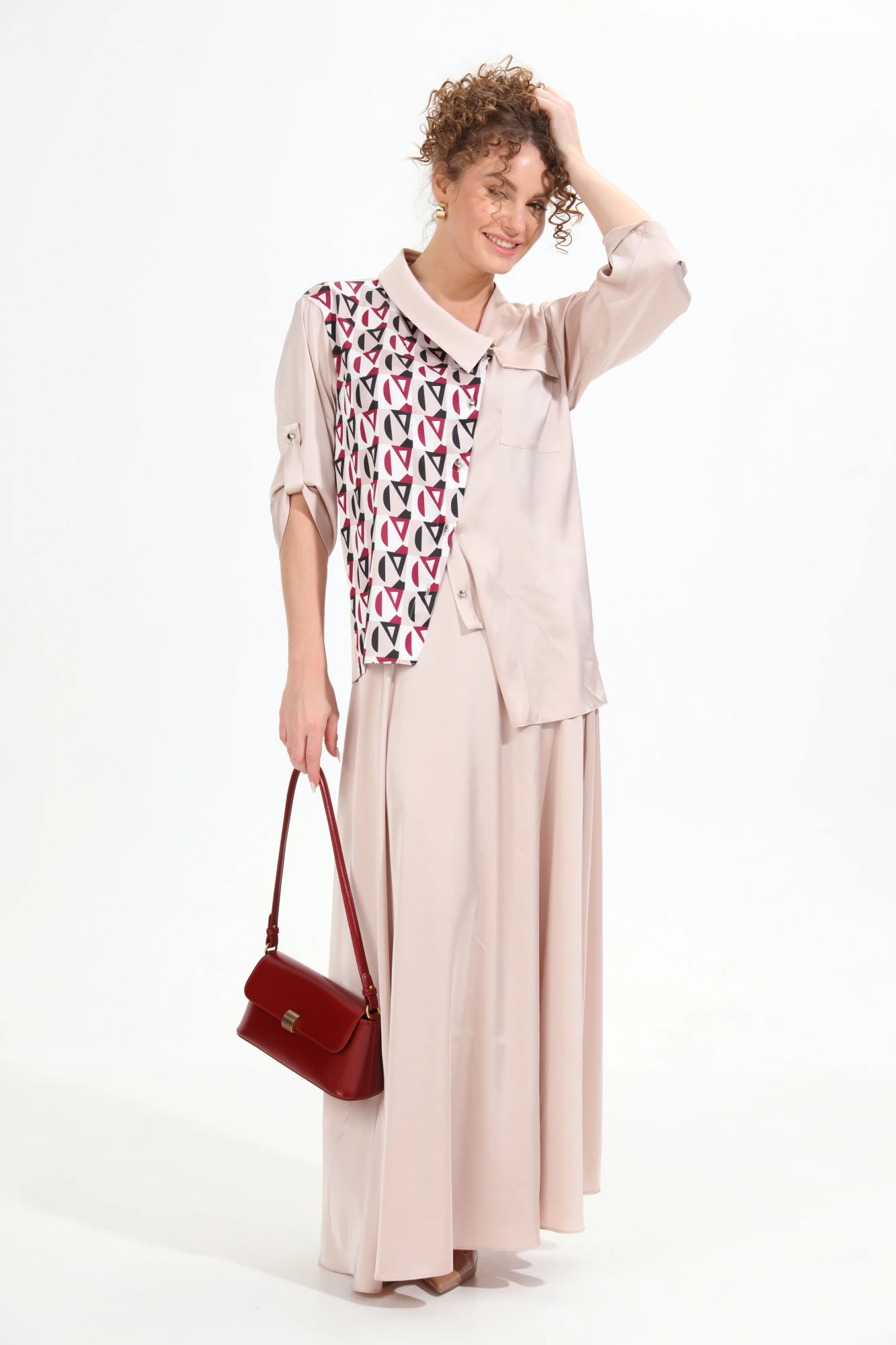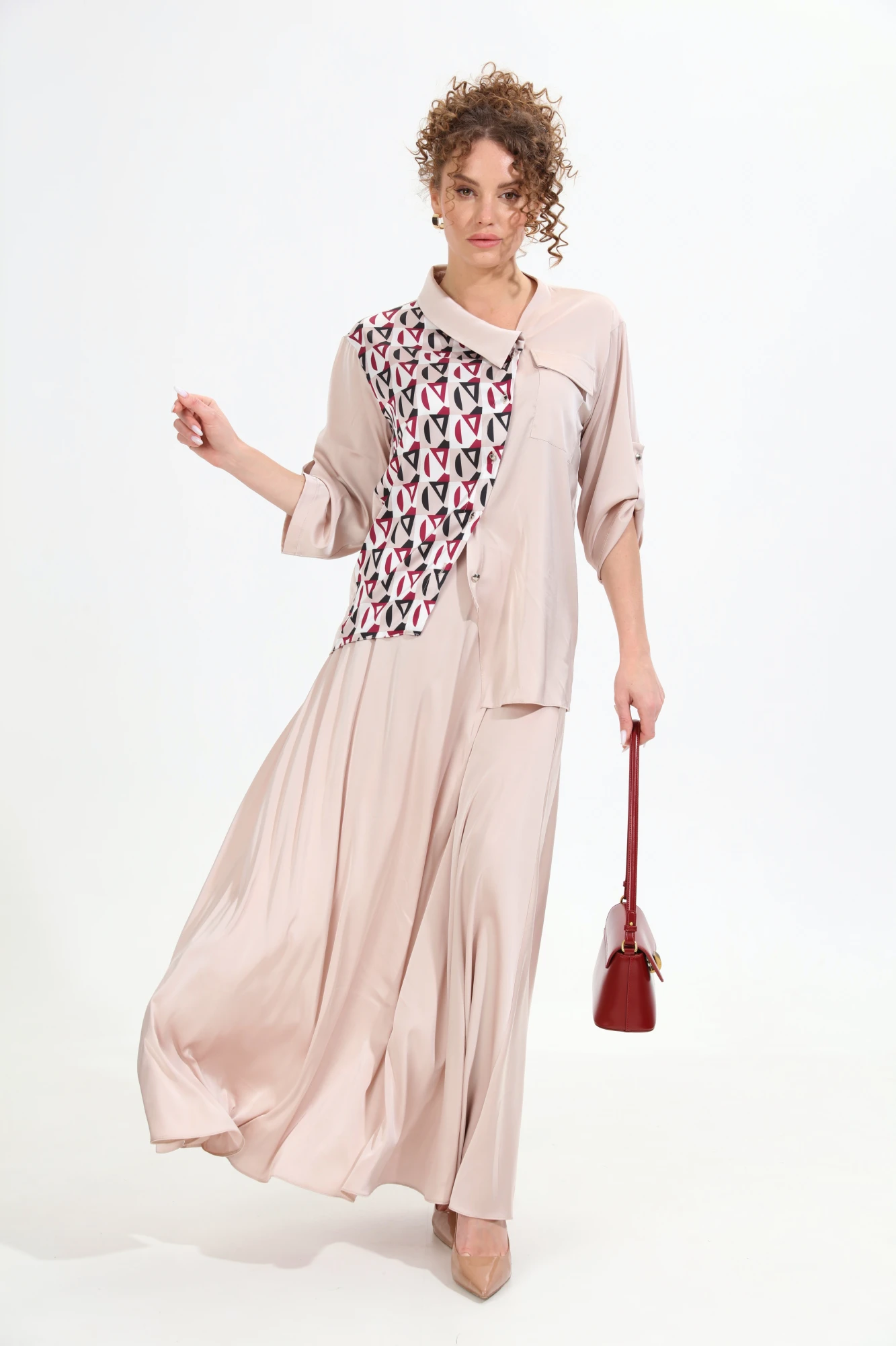 Юбочный костюм NikVa 928-5 крем-брюле и ромбы Армани двойка