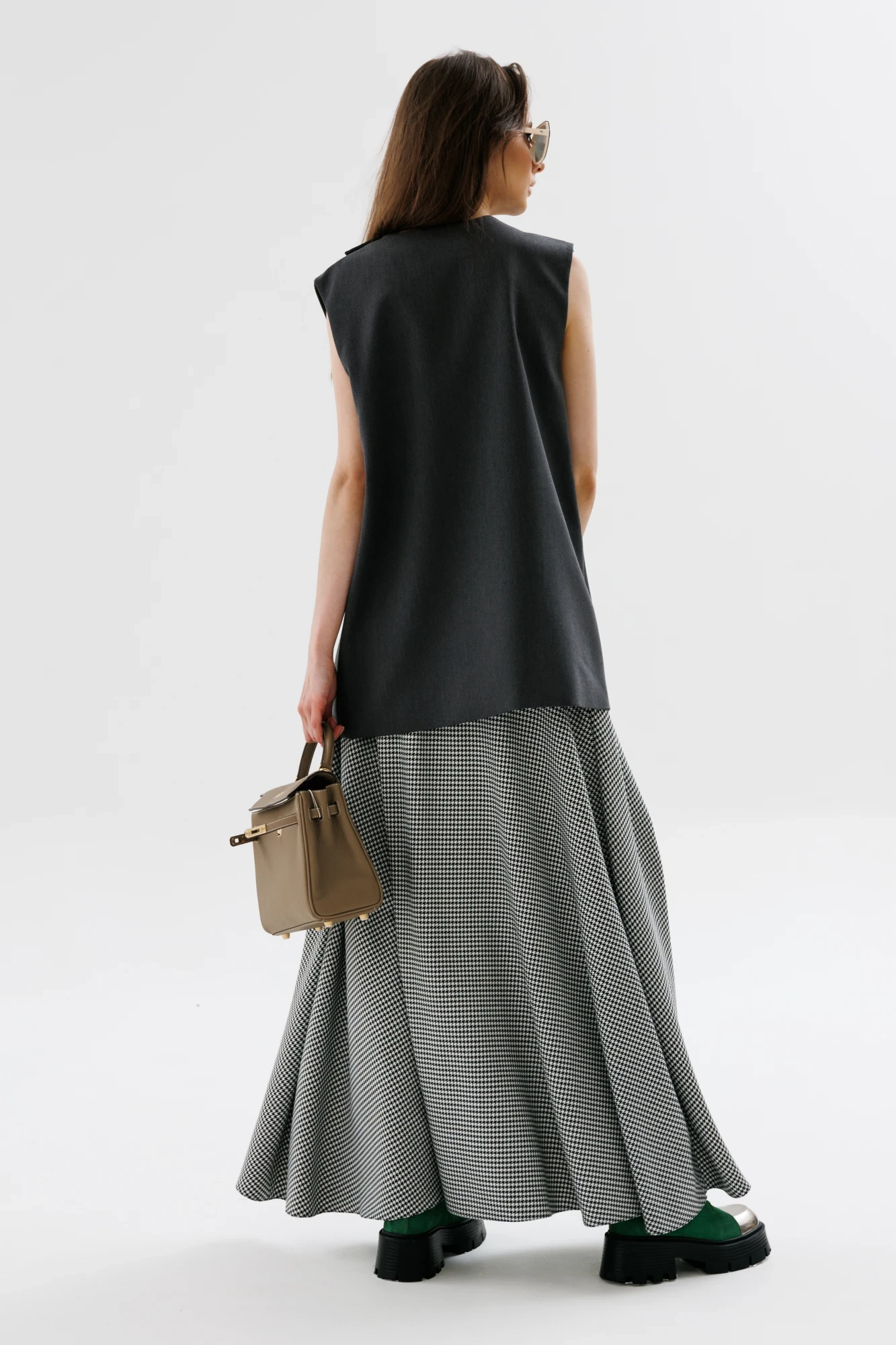 Юбочный костюм NikVa н724-1 графит+чёрно-белая гус лапка двойка