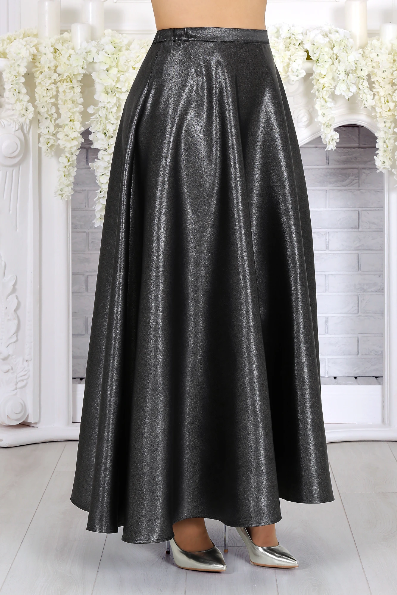 Юбка — движение, блеск и идеальный баланс. Юбка‑полусолнце из сатина с напылением мягко струится, красиво переливается и задаёт праздничный тон всему образу.
