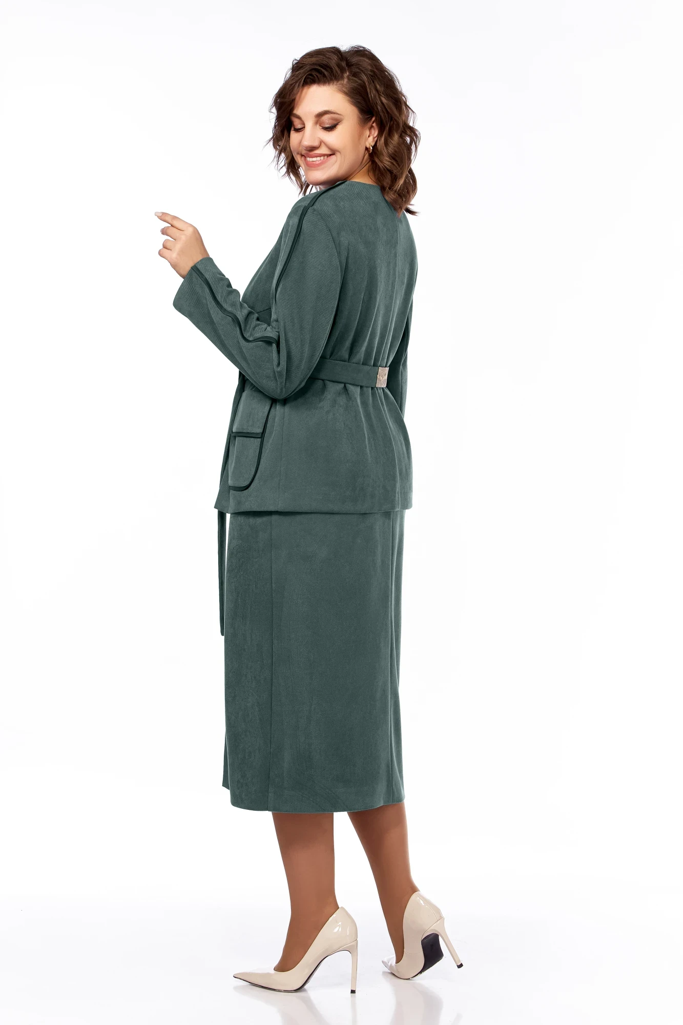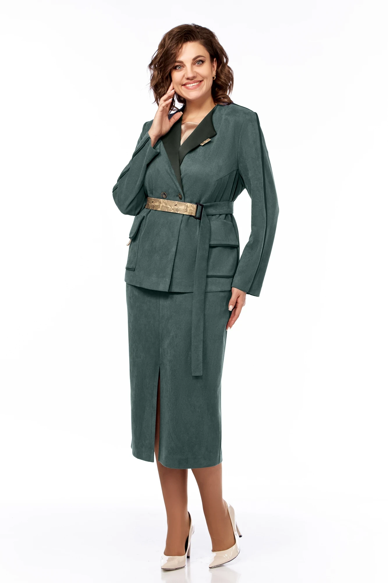 Юбочный костюм Ольга Стиль 870 зеленая бирюза