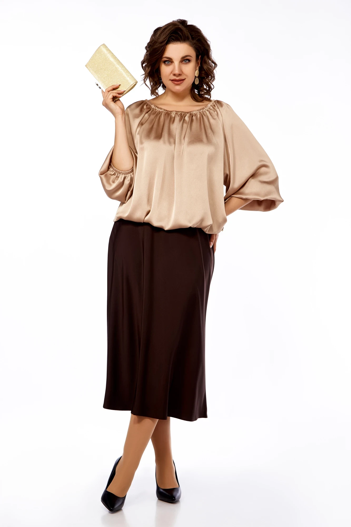 Юбочный костюм Ольга Стиль 882 беж с блеском+шоколадный