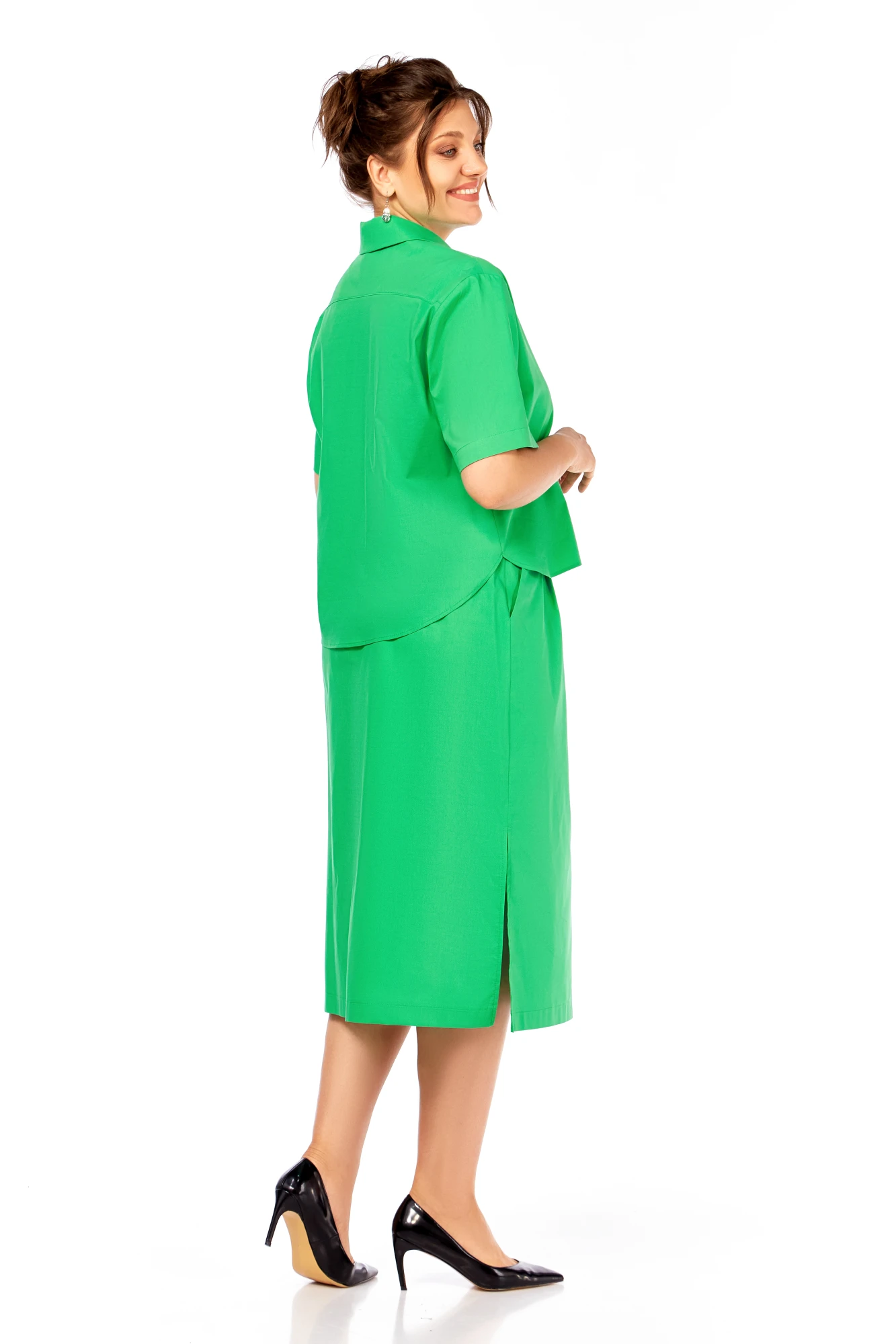 Юбочный костюм Ольга Стиль 941 зелень двойка