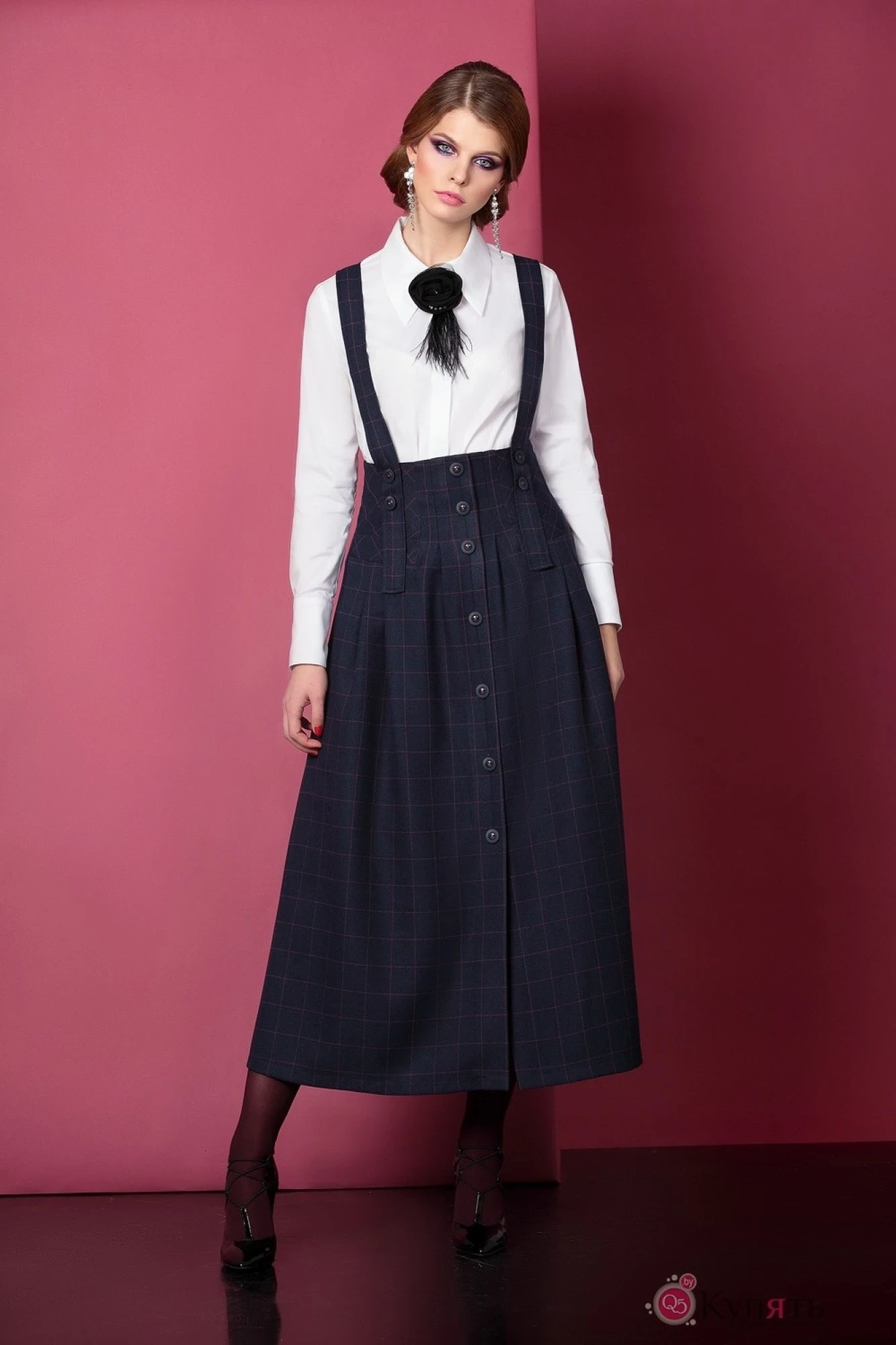 Юбочный костюм Ольга Стиль Т456 синяя клетка