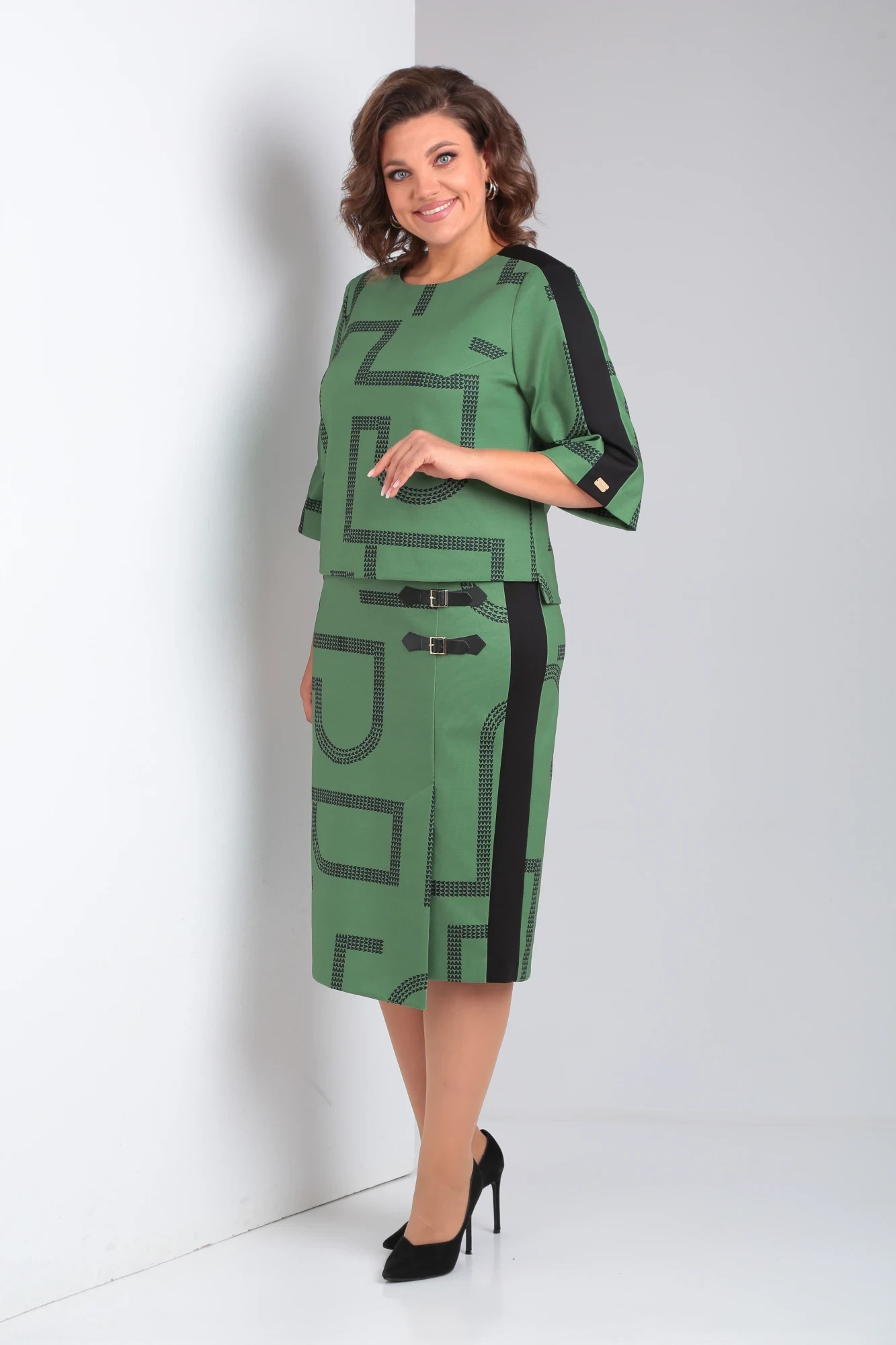 Юбочный костюм Rishelie 906 ЗЕЛЕНЫЙ_ПРИНТ
