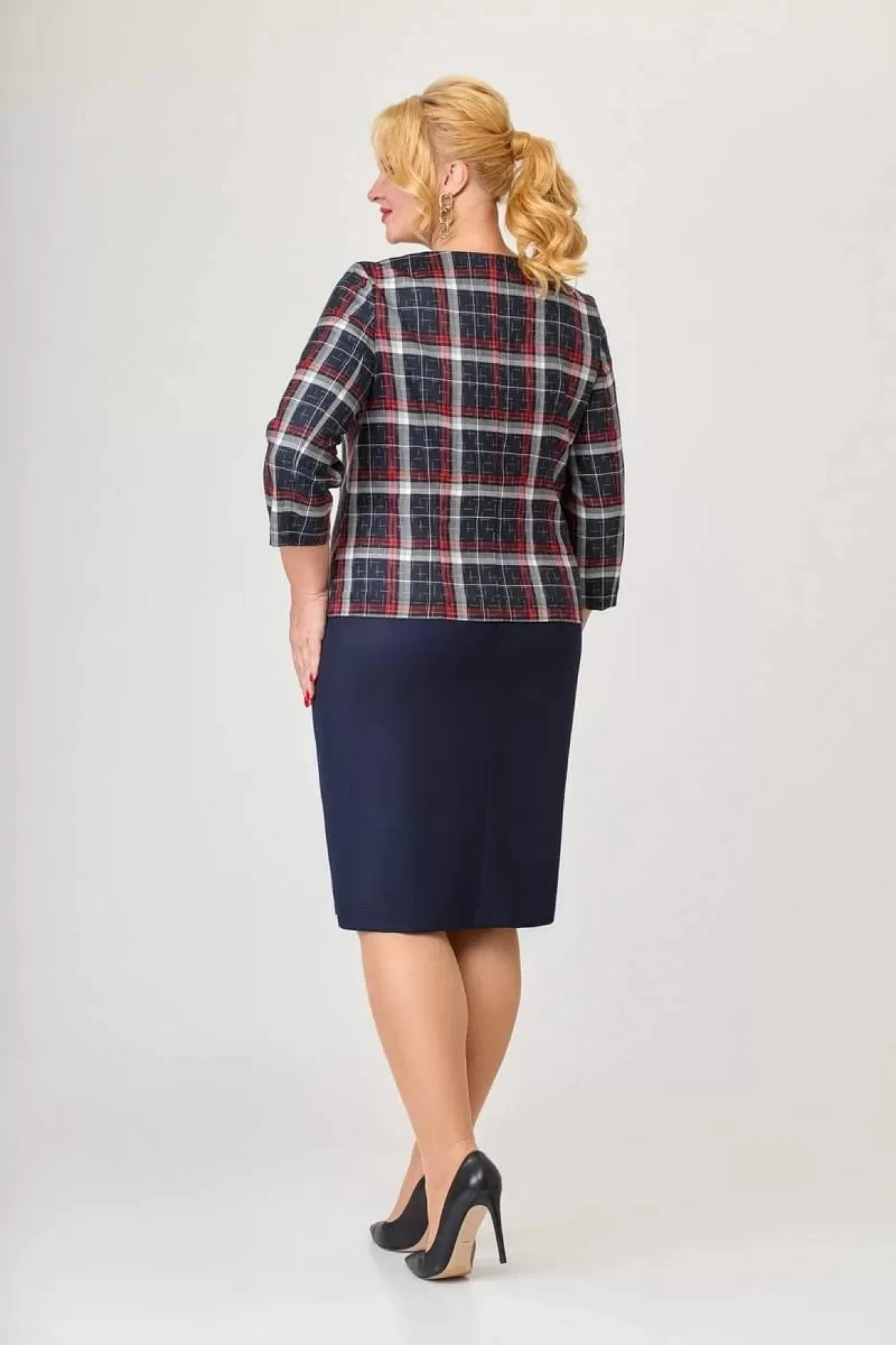 Юбочный костюм СлавияЭлит М509 красная клетка двойка