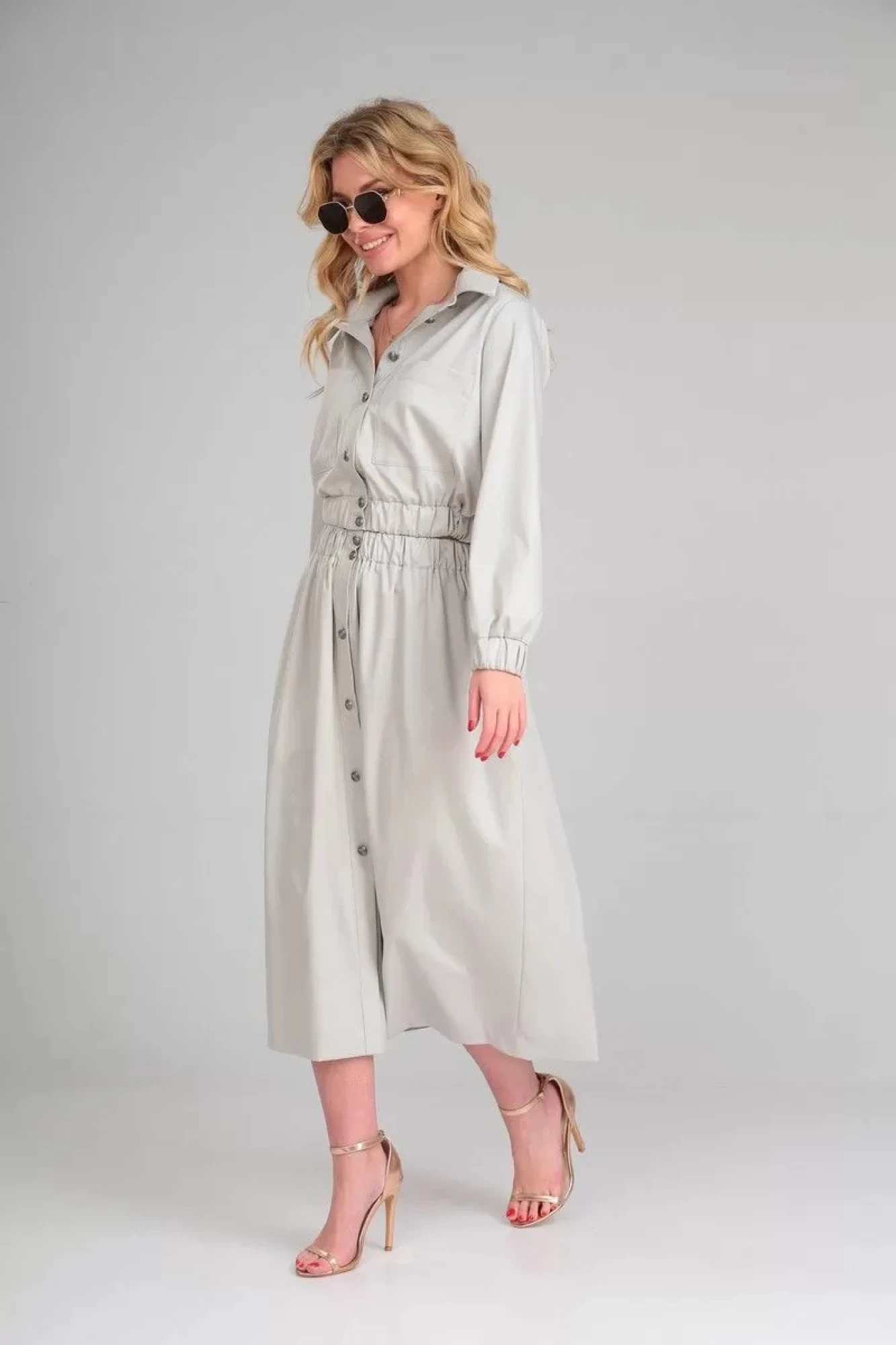 Блуза из ткани с хлопком, прямого силуэта до линии талии, с притачным поясом на резинке, отложным воротником на стойке, с центральной застежкой на петли и пуговицы. Перед с накладными карманами. Спинка прямая с кокеткой. Рукав одношовный втачной рубашечного типа, с притачной манжетой на резинке.
