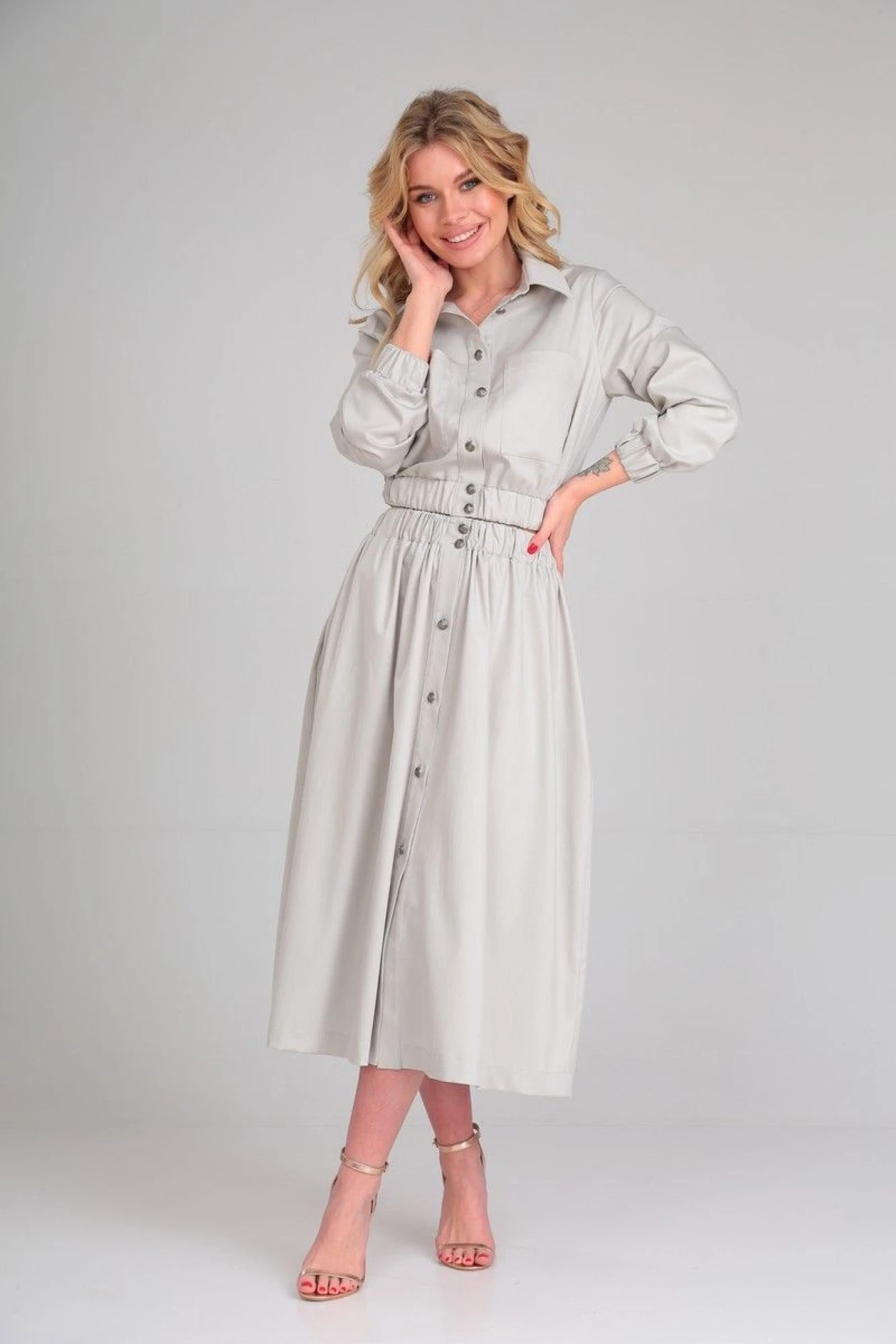 Юбка из ткани с хлопком, расширенная к низу, с карманами в боковых швах, притачной планкой, поясом с резинкой и застежкой на петли и пуговицы.