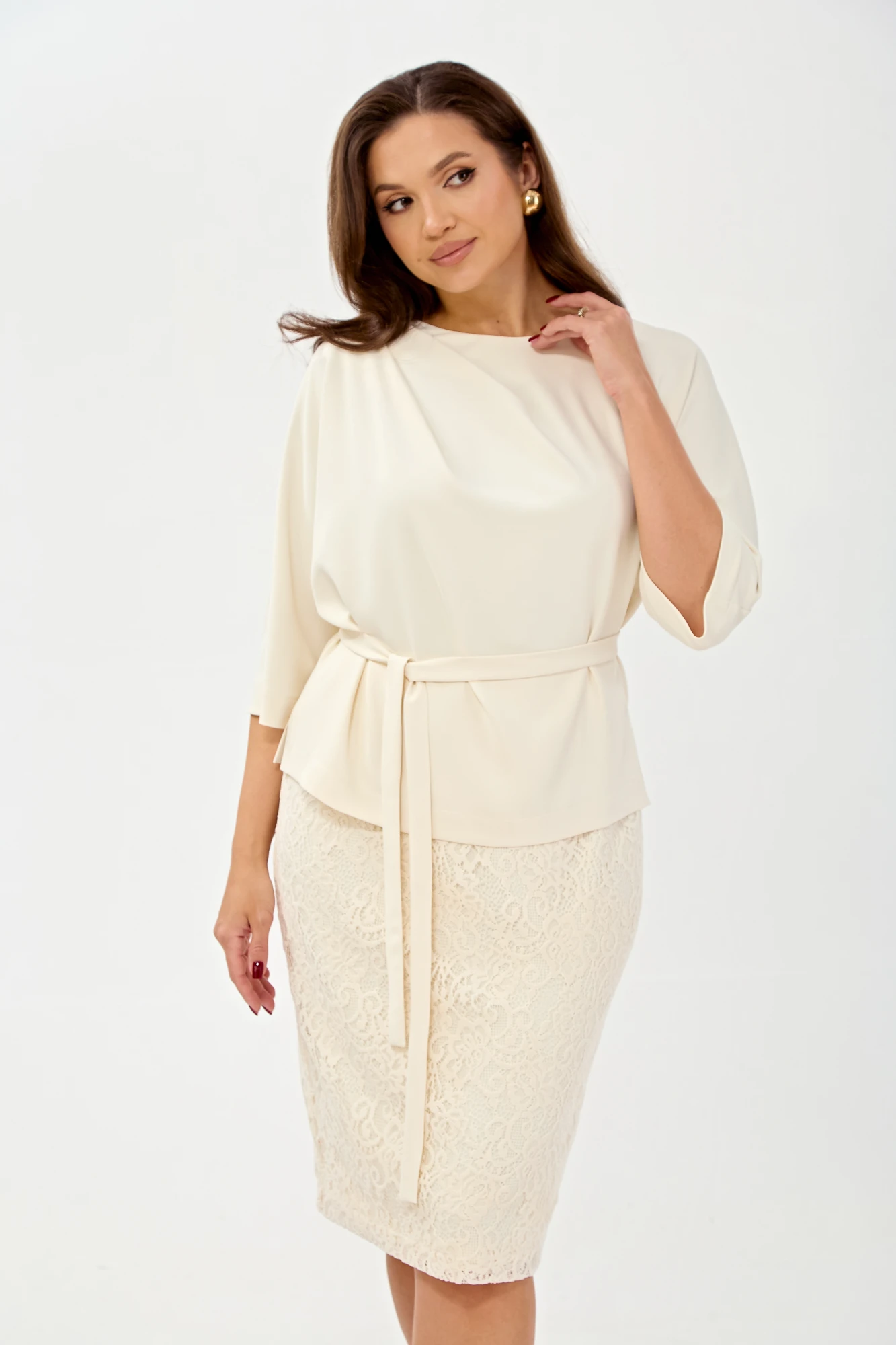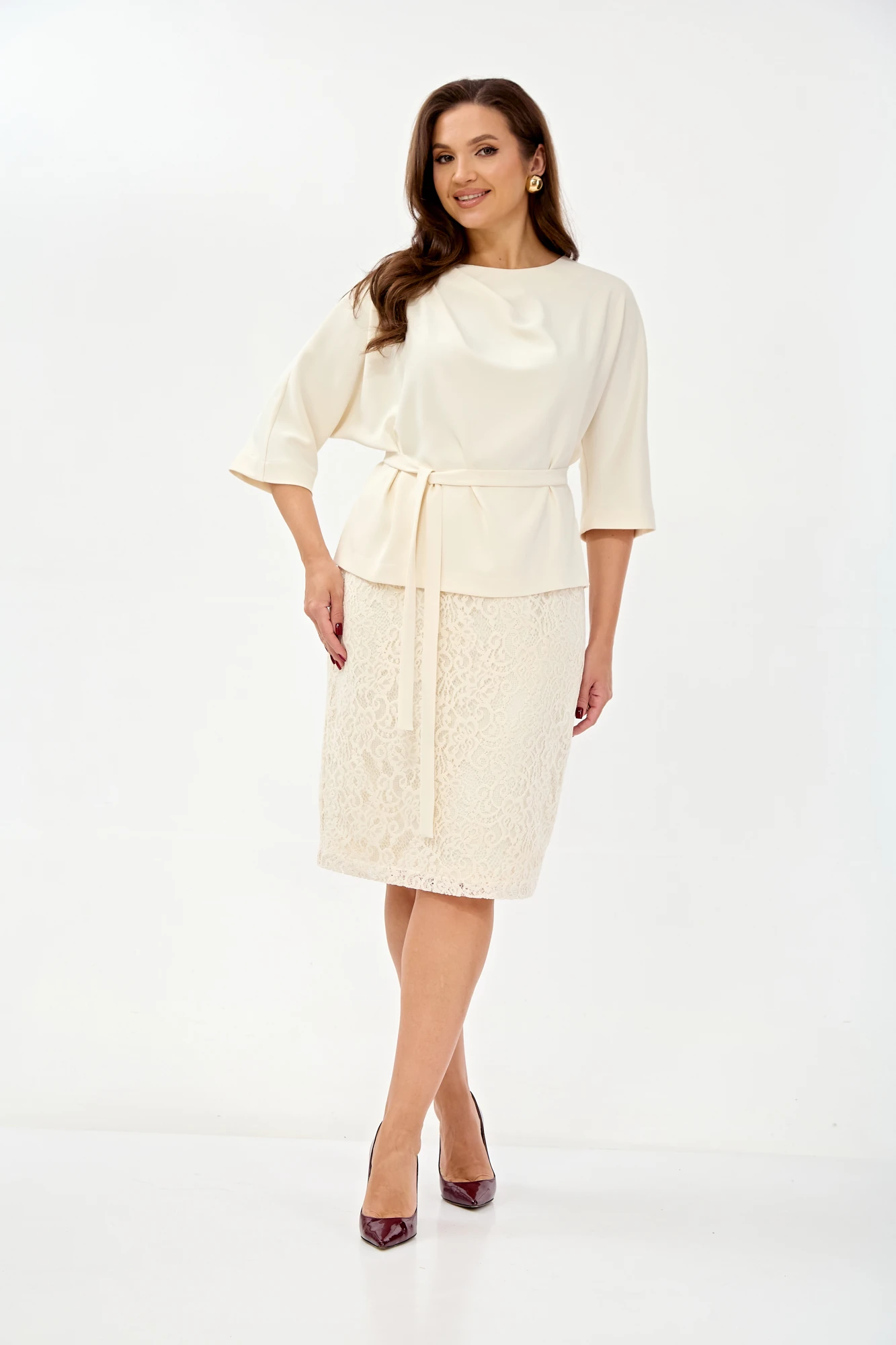 Юбочный костюм TVIN 7886 молочный двойка