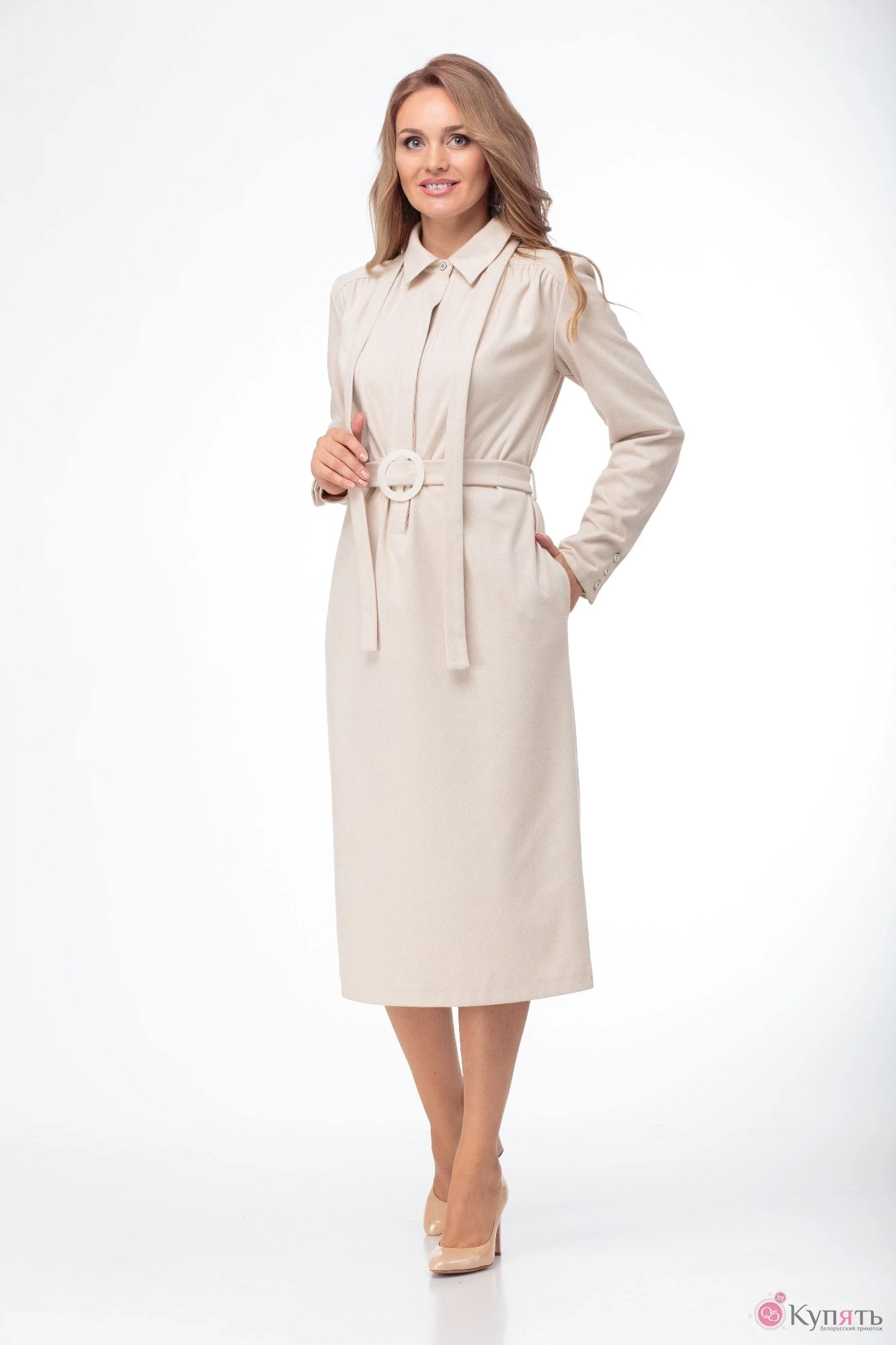 Платье дополнено съёмным поясом на пряжке и съемной деталью по воротнику, которая завершает образ модели платья.