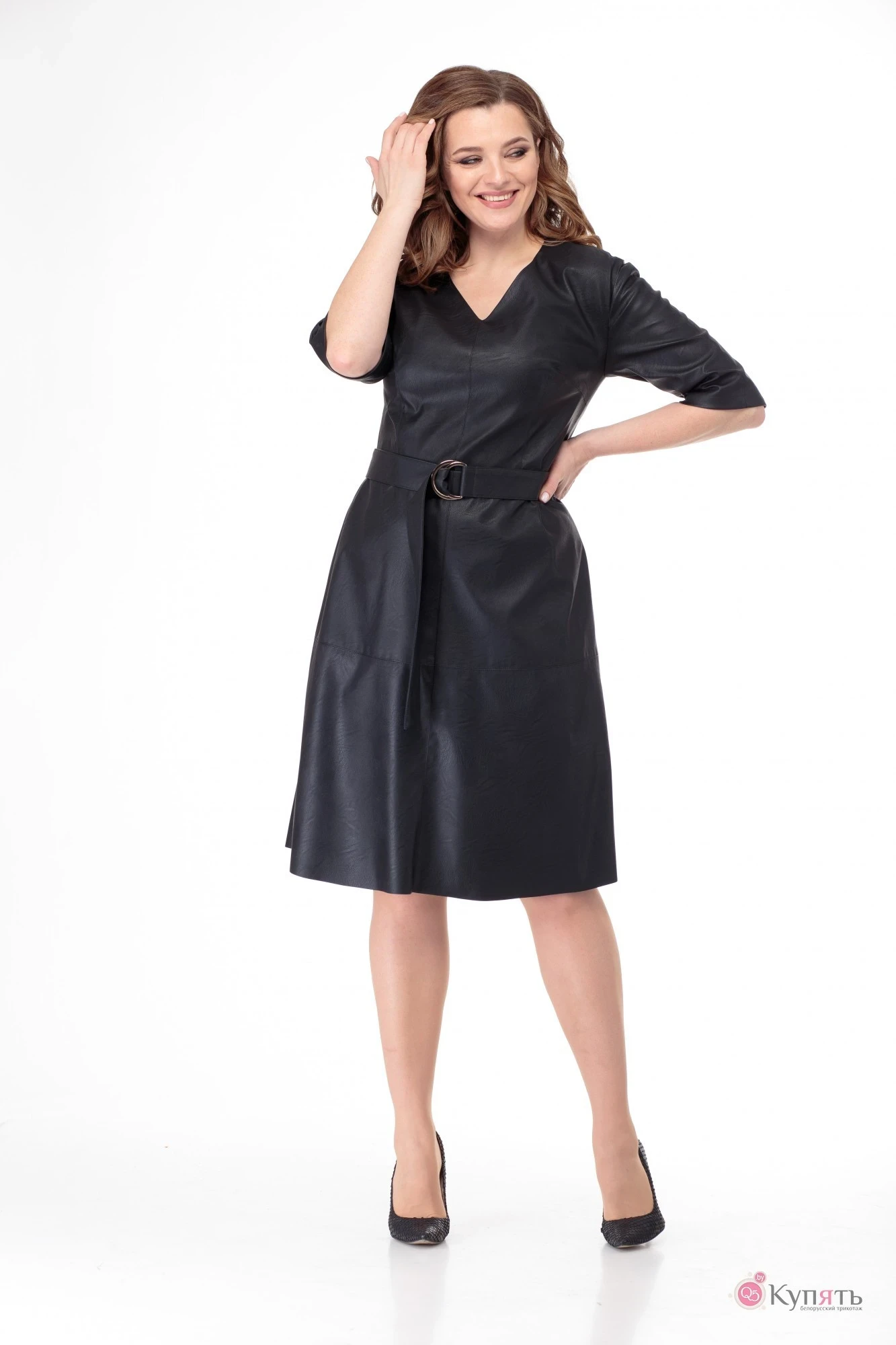 Полуприлегающий силуэт, отрезное по линии талии, слегка спущенные плечи, рукав 3/4, V-образный вырез горловины, правильная длина ниже колена, нагрудные и талевые вытачки. Застежка на потайную молнию в среднем шве спинки.