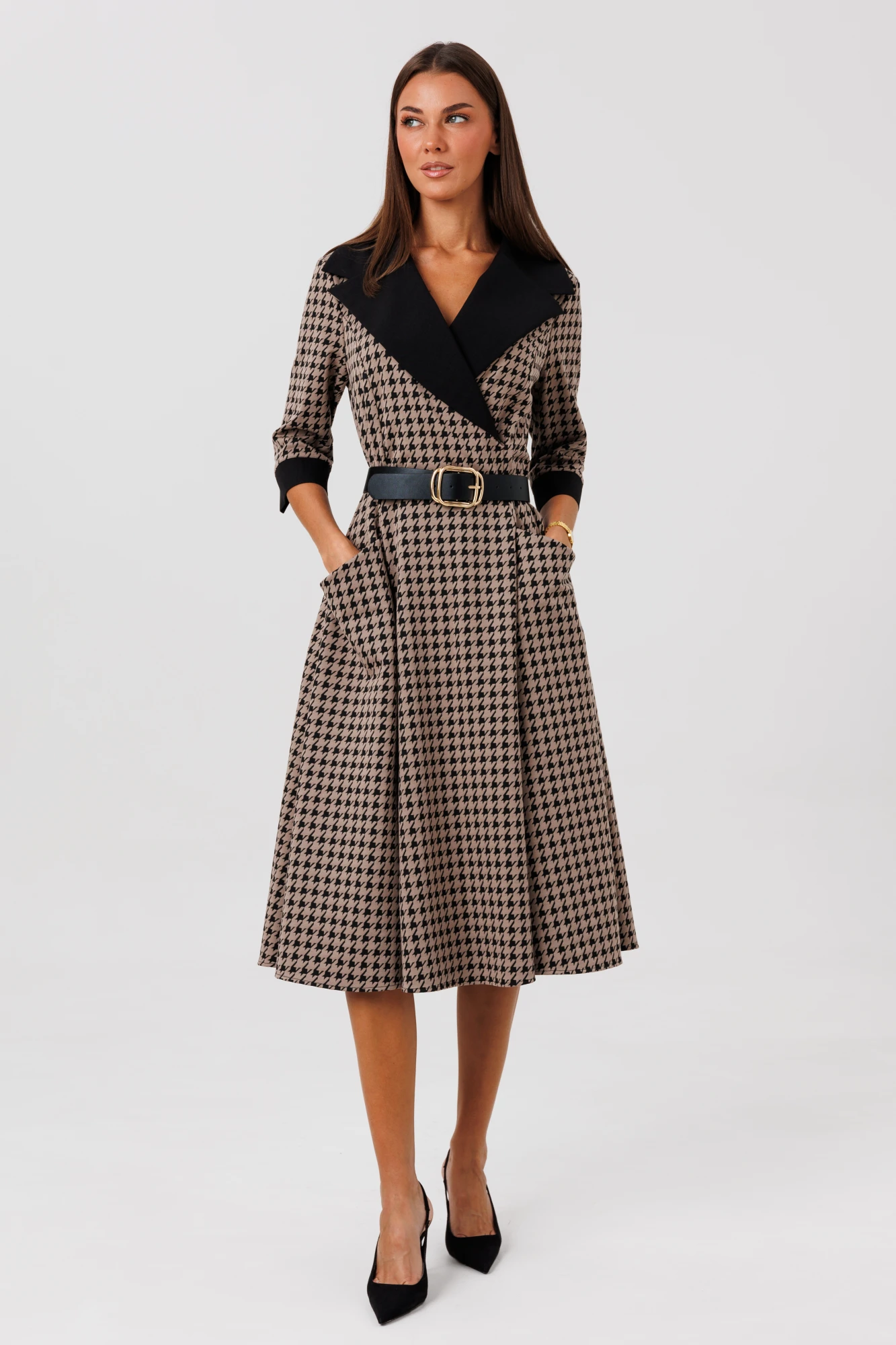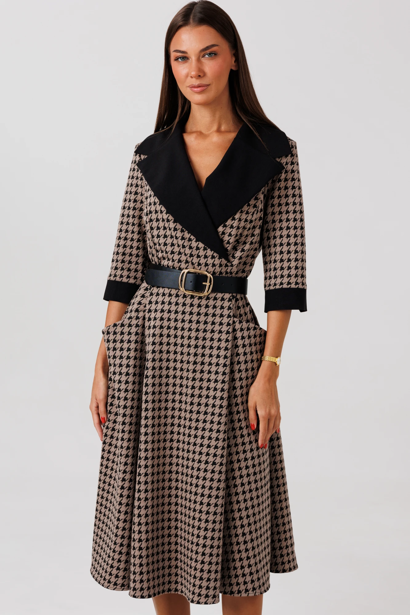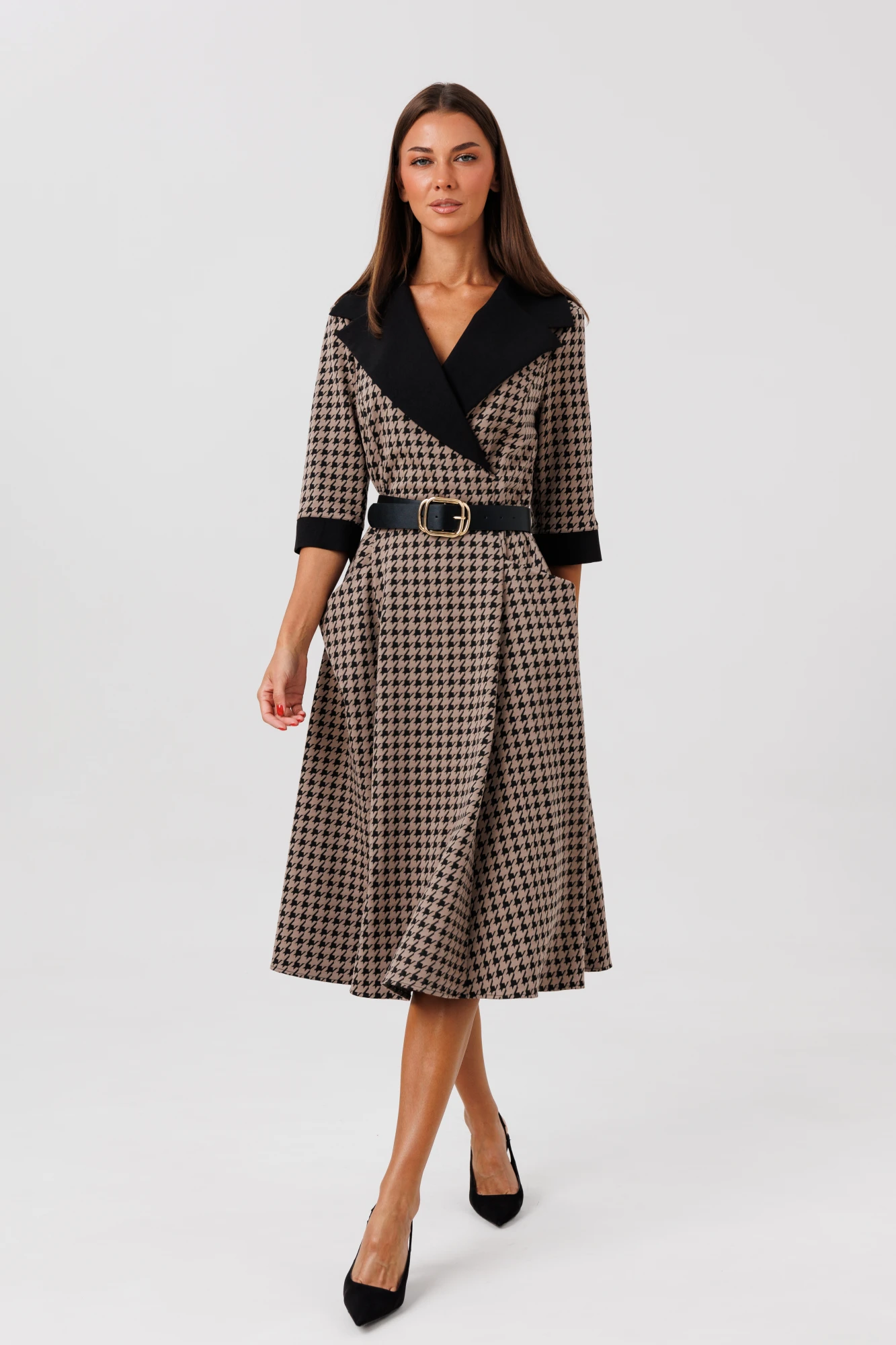 Платье Ларс Стиль 1128 капучино черный принт, черный