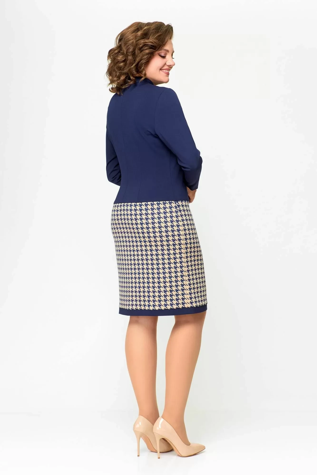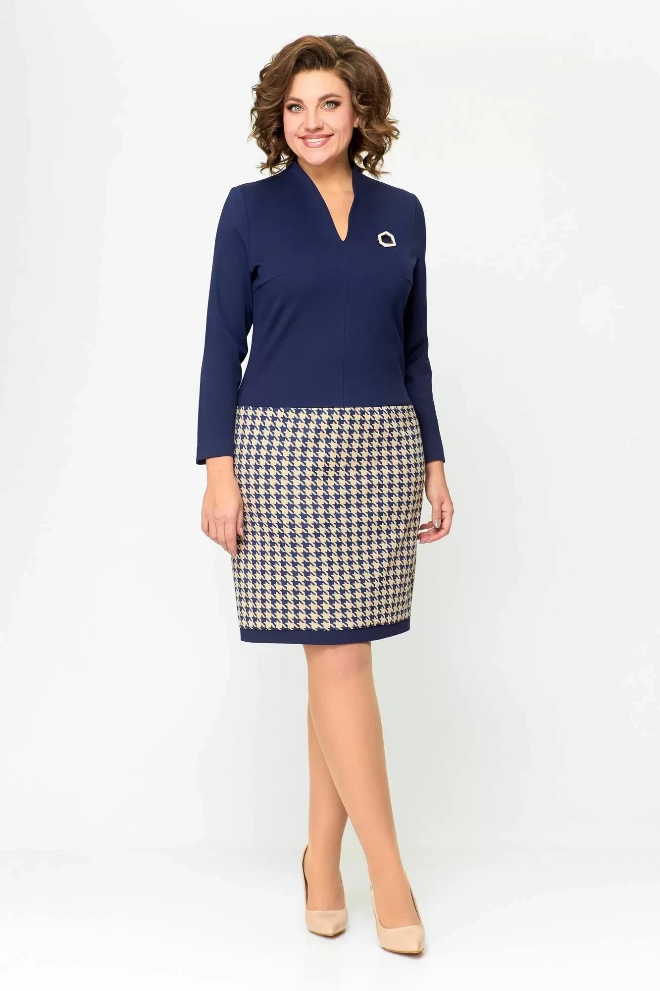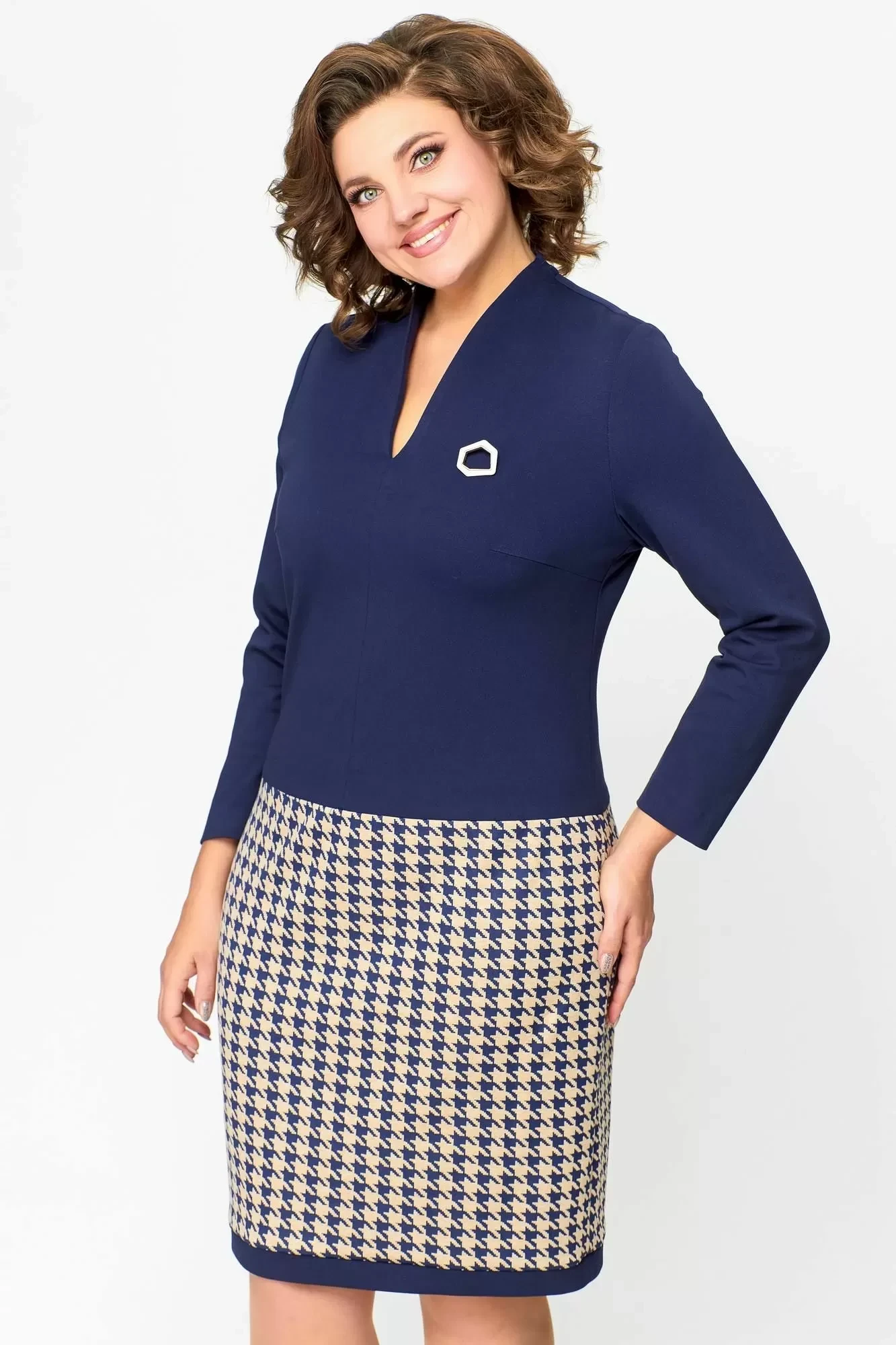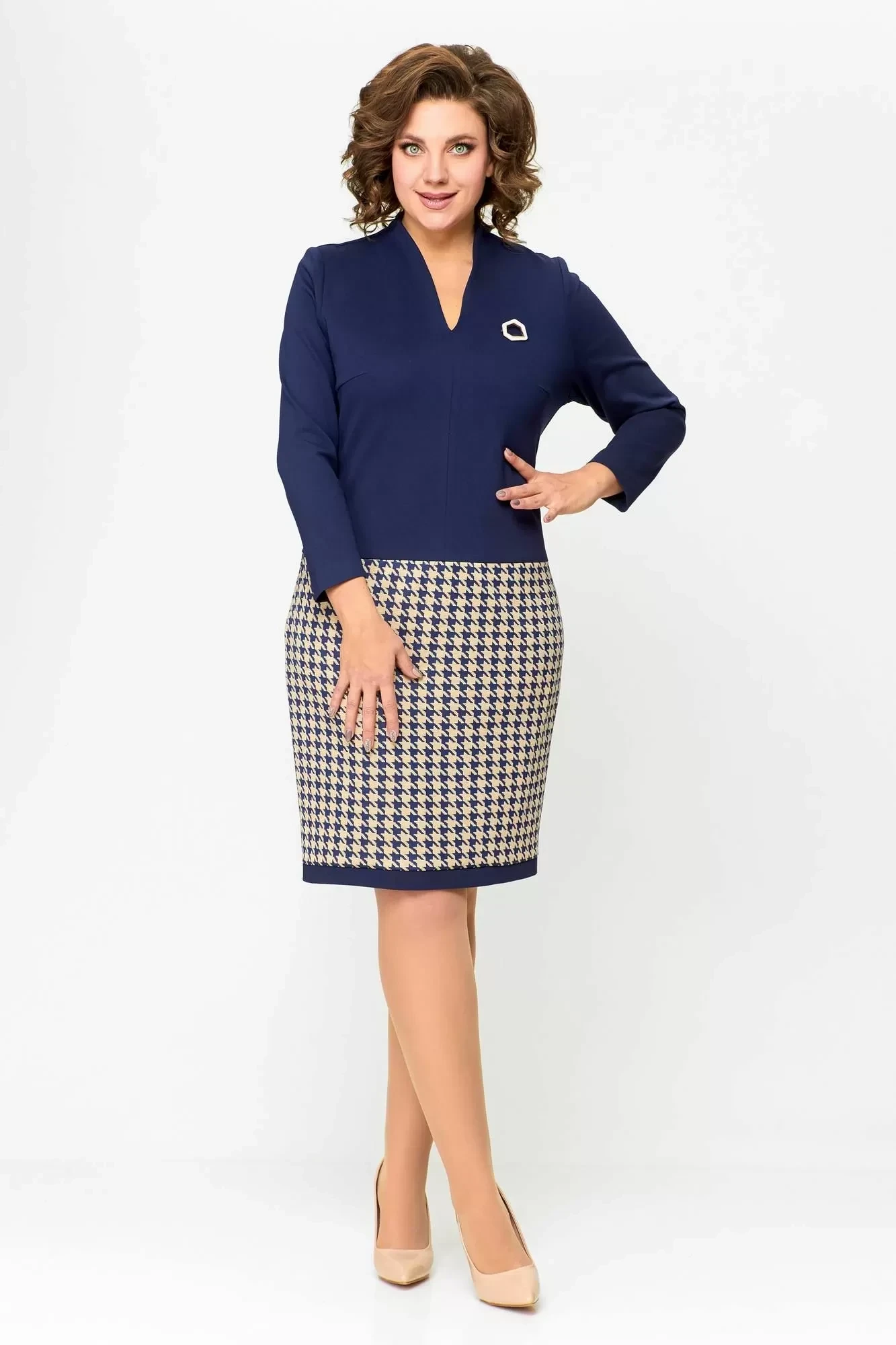 Деловое платье Swallow 699.1 Королевский синий, сине-бежевая «гусиная лапка».