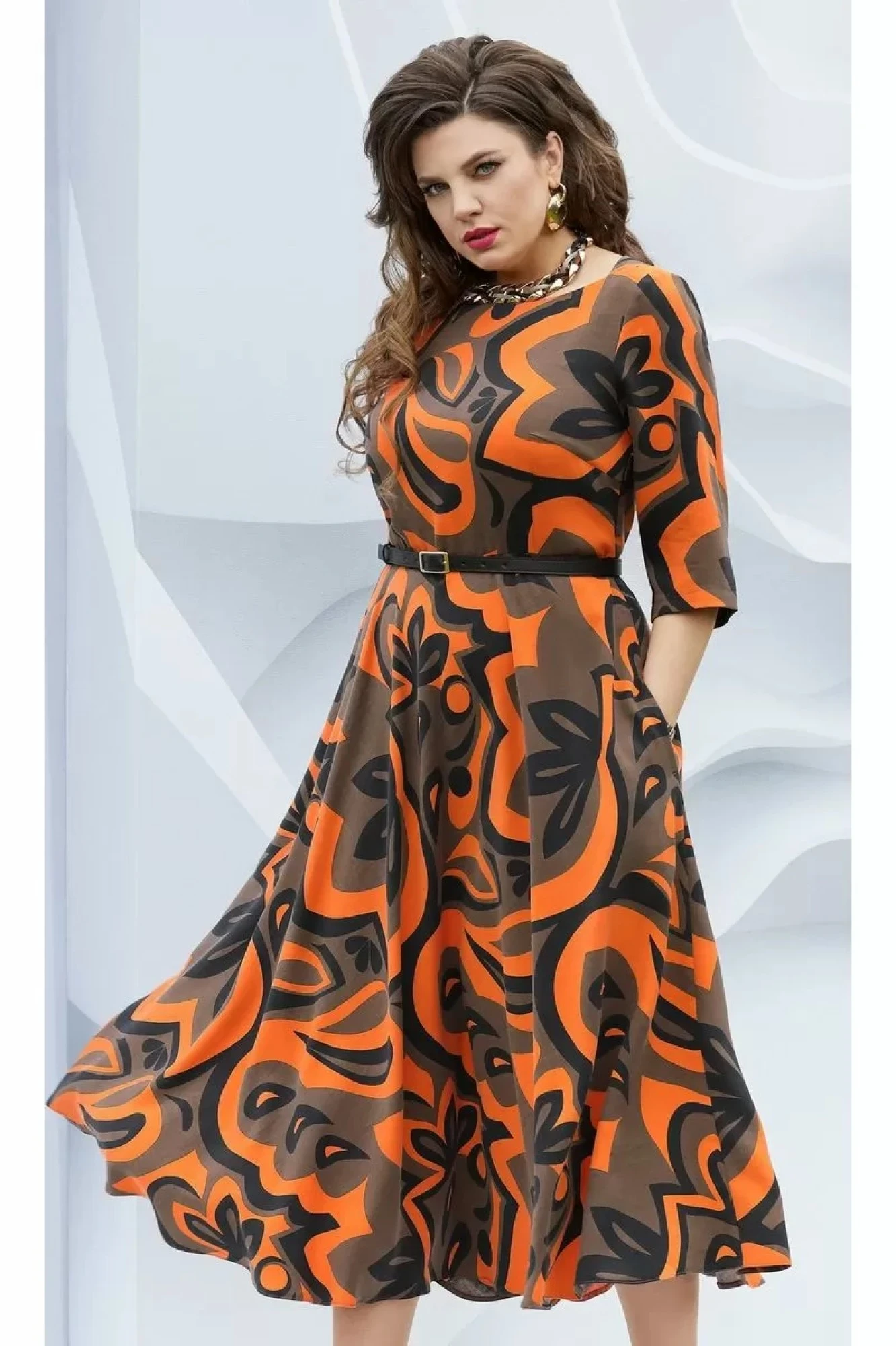Платье из вискозы Vittoria Queen 19353/1 диз.цветы оранжевый