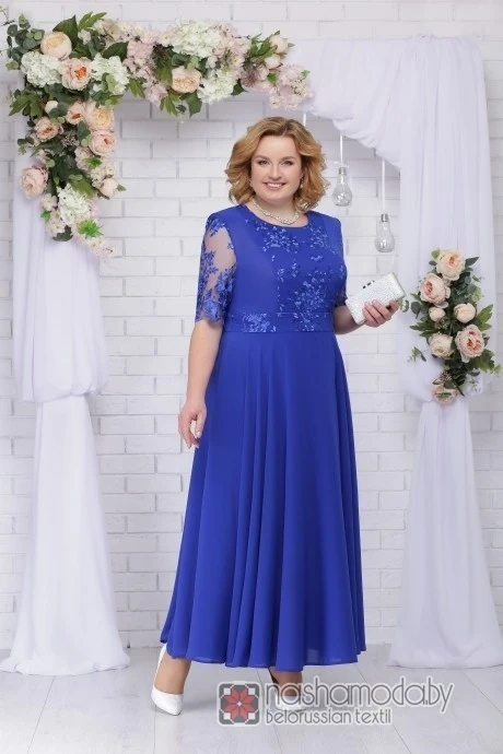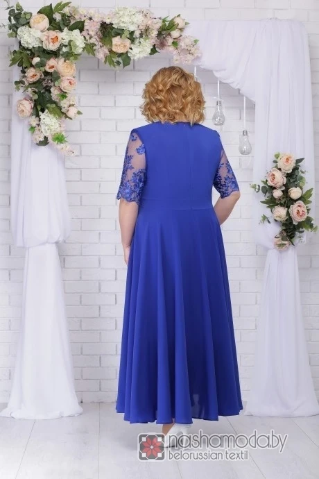Элегантное платье преобразит привычный образ, дополнив его привлекательной романтичной ноткой. Изящный рельефный лиф смотрится необычно, благодаря дополнительному гипюровому слою с аккуратным цветочным узором. Укороченные рукава также выполнены из гипюра. Тонкий подрезной поясок подчеркивает линию талии, делая фигуру более грациозной. Очень нежно и непринужденно выглядит свободная юбка полусолнце. Стильное дополнение – строгий однотонный жакет с приталенным силуэтом. Модель без застежек выразительно подчеркивает особенности дизайна платья. Комплект женский, состоящий из платья и жакета. Платье полуприлегающего силуэта, отрезное по линии талии, со вставкой в виде пояса с нашитым кружевом спереди. Юбка полусолнца. Длинна изделия по среднему шву спинки 134,0 см. Лиф с рельефами, выходящими из плечевого шва и до подрезного пояса. Средняя часть переда двойная, нижняя часть из основной ткани, верхняя из гипюра. Спинка с талиевыми вытачками и со средним швом, в котором обработана застежка на потайную тесьму молнию. Рукава втачные, одношовные, короткие, из гипюра. Горловина круглая, углубленная, обтачная. Изделие с плечевыми накладками. Короткий жакет, на подкладке, чуть приталенный, без застежки. Передняя половинка с рельефами, выходящими из проймы вниз. Спинка со средним швом и рельефами, выходящими из проймы вниз. Рукава втачные, двухшовные, длиной 43 см. Горловина круглая, обтачная. Изделие с плечевыми накладками. Ширина рукава по линии плеча жакета/ Платья /Ширина платья на уровне талии, см 50р – 36/34/90 см, 52р – 38/36/94 см, 54р – 40/38/98 см, 56р - 42/40/102 см, 58р – 44/42/106 см, 60р – 46/44/110 см.