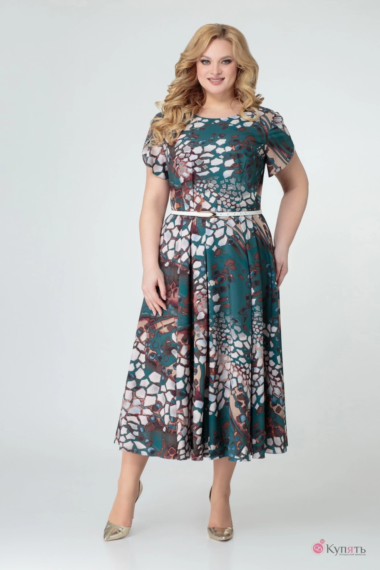 Платье Swallow 364 зеленый в принт «камушки»