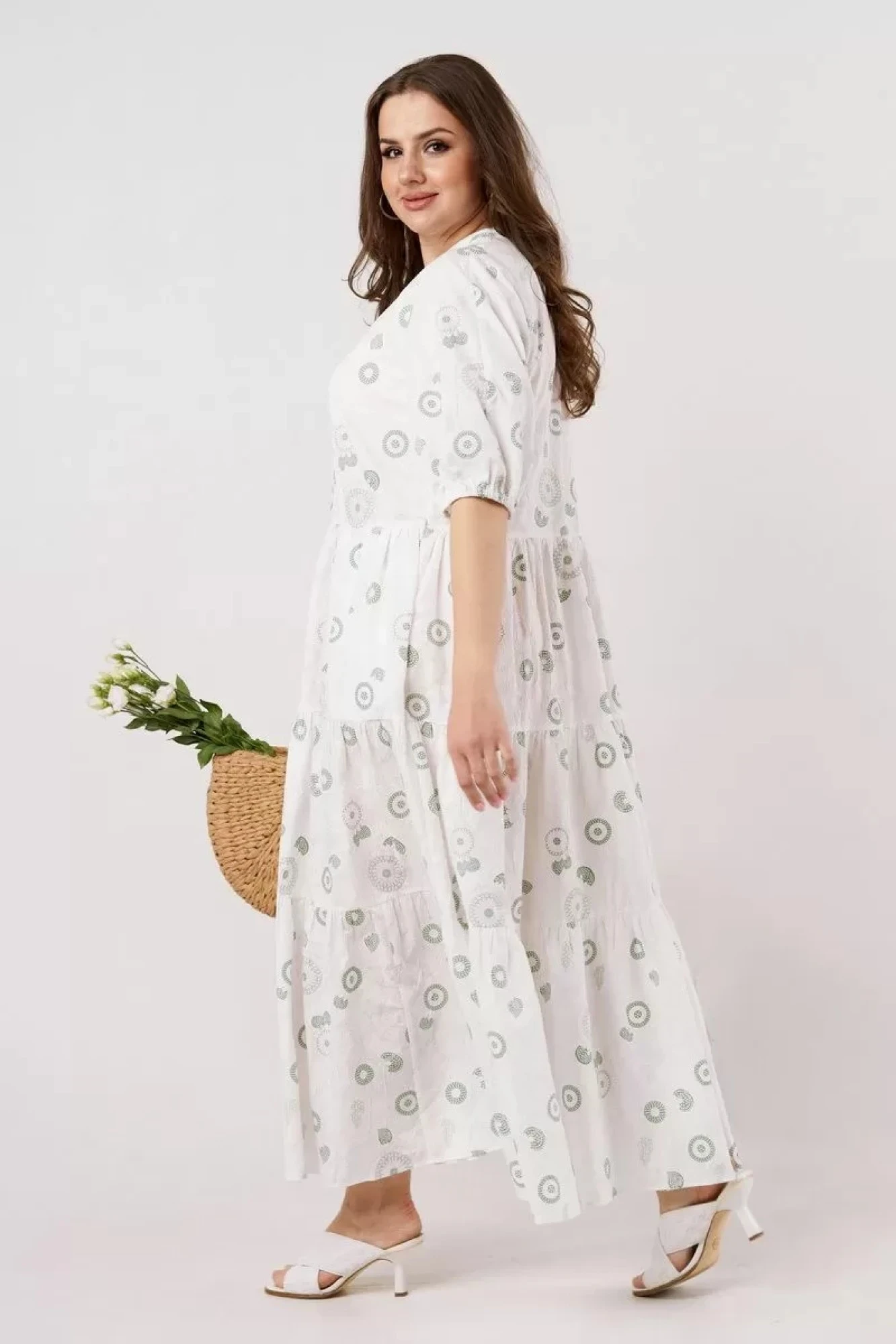 Длинное хлопковое платье ANDINA CITY 806-2 Белое в круги