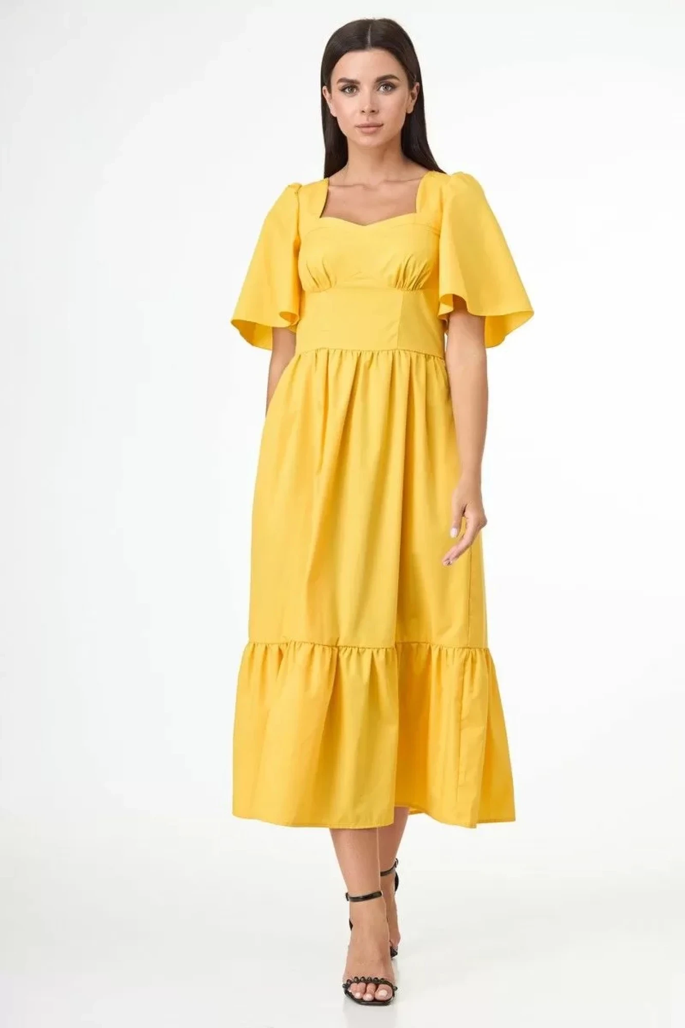 46, 48 , 50 , 52 , 54 , 56Платье длины миди, полуприлегающего силуэта, отрезное по линии талии.