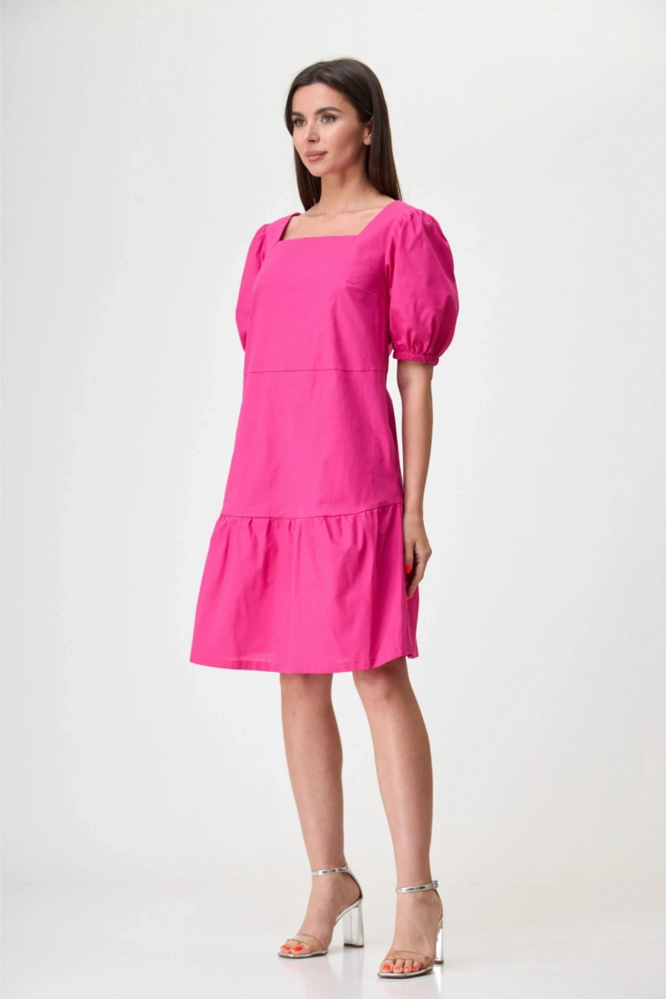 Длина до середины колена придает ему элегантность, а волан на низу платья добавляет легкости движениям. Рукав 3/4 с собранными деталями и эластичным низом придают образу непринужденную изысканность.