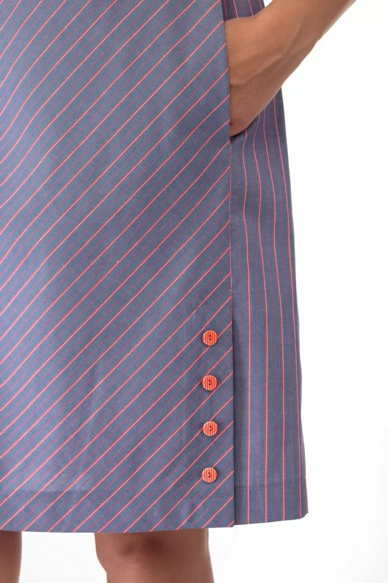 Интересно обыграны детали кроя направлением полоски - диагонали выгодно оформляют силуэт.