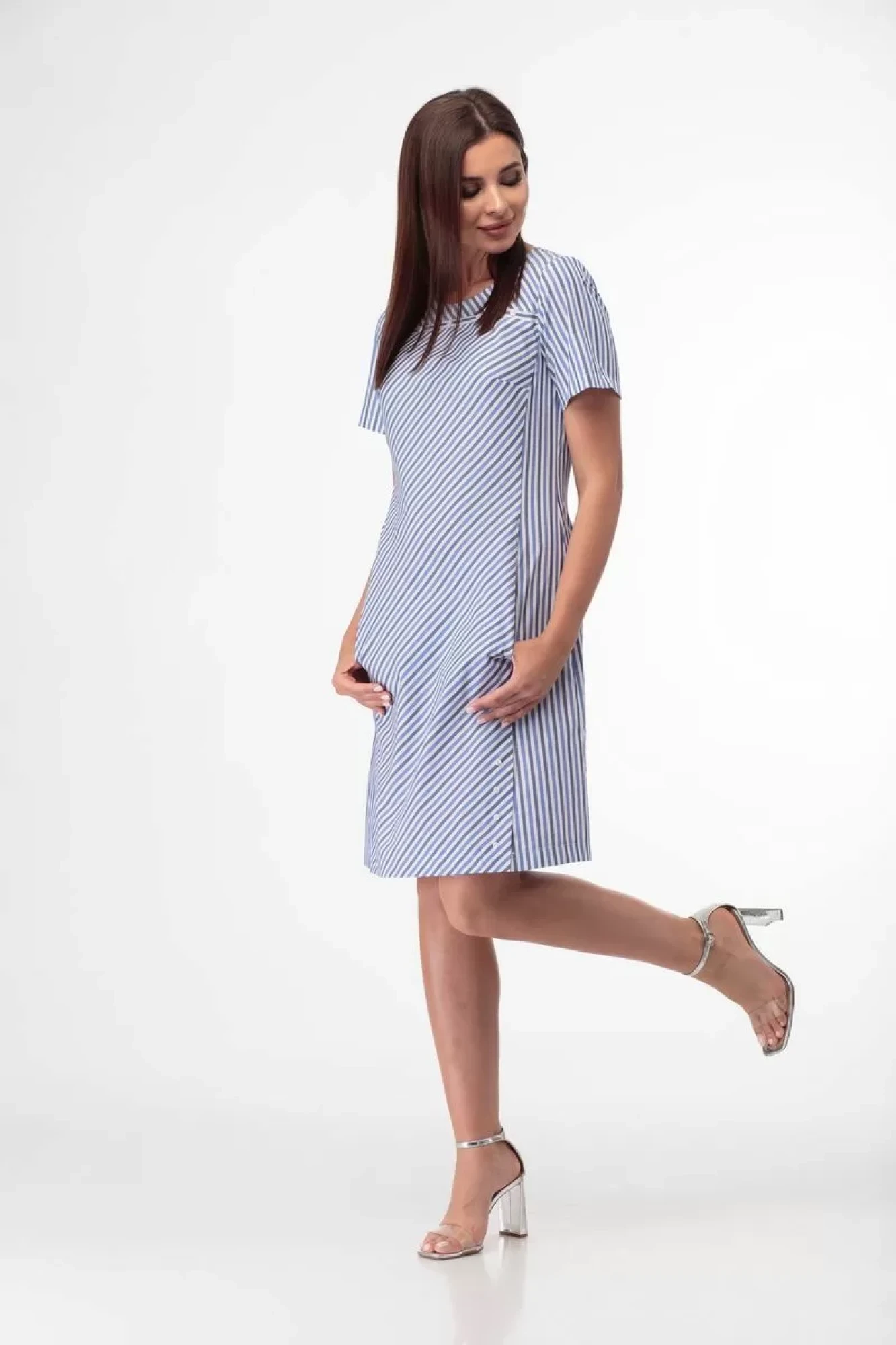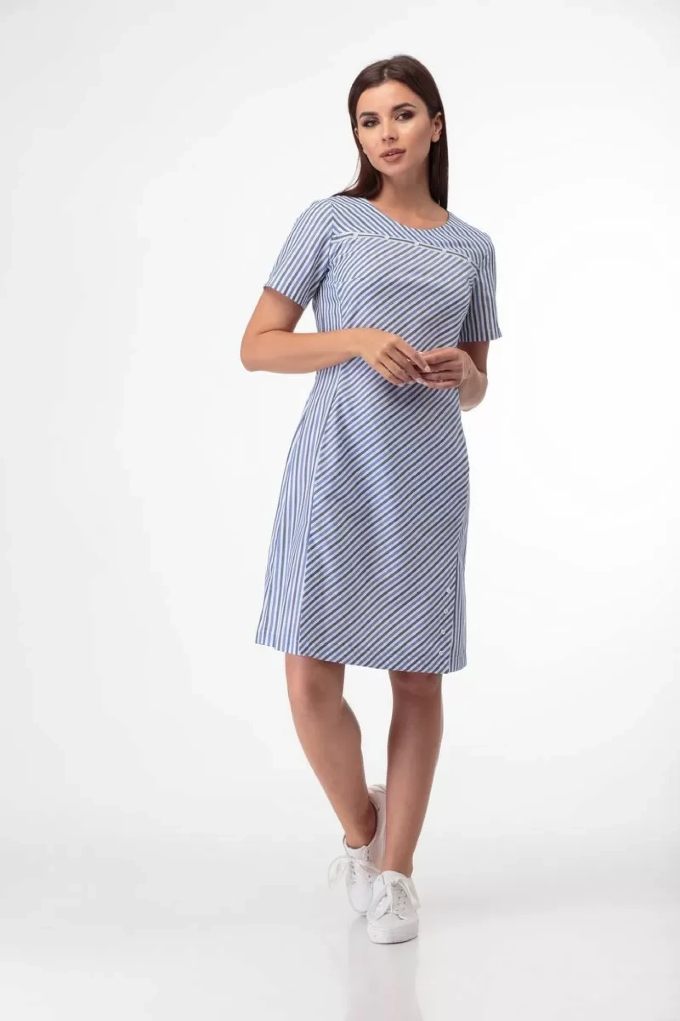 Интересно обыграны детали кроя направлением полоски - диагонали выгодно оформляют силуэт.