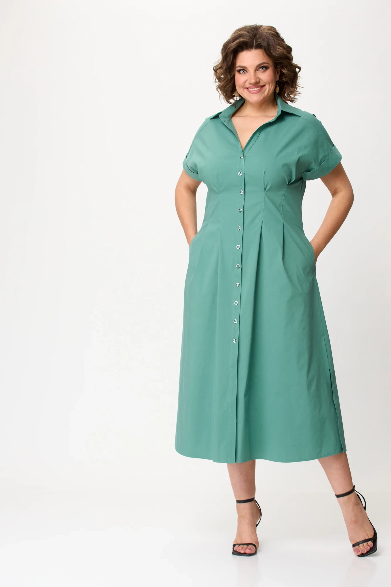 48,50, 52Платье на линии талии заложено в складки по переду и спинке. Платье с центральной застежкой на петли пуговицы. Горловина оформлена рубашечным воротником на стойке.