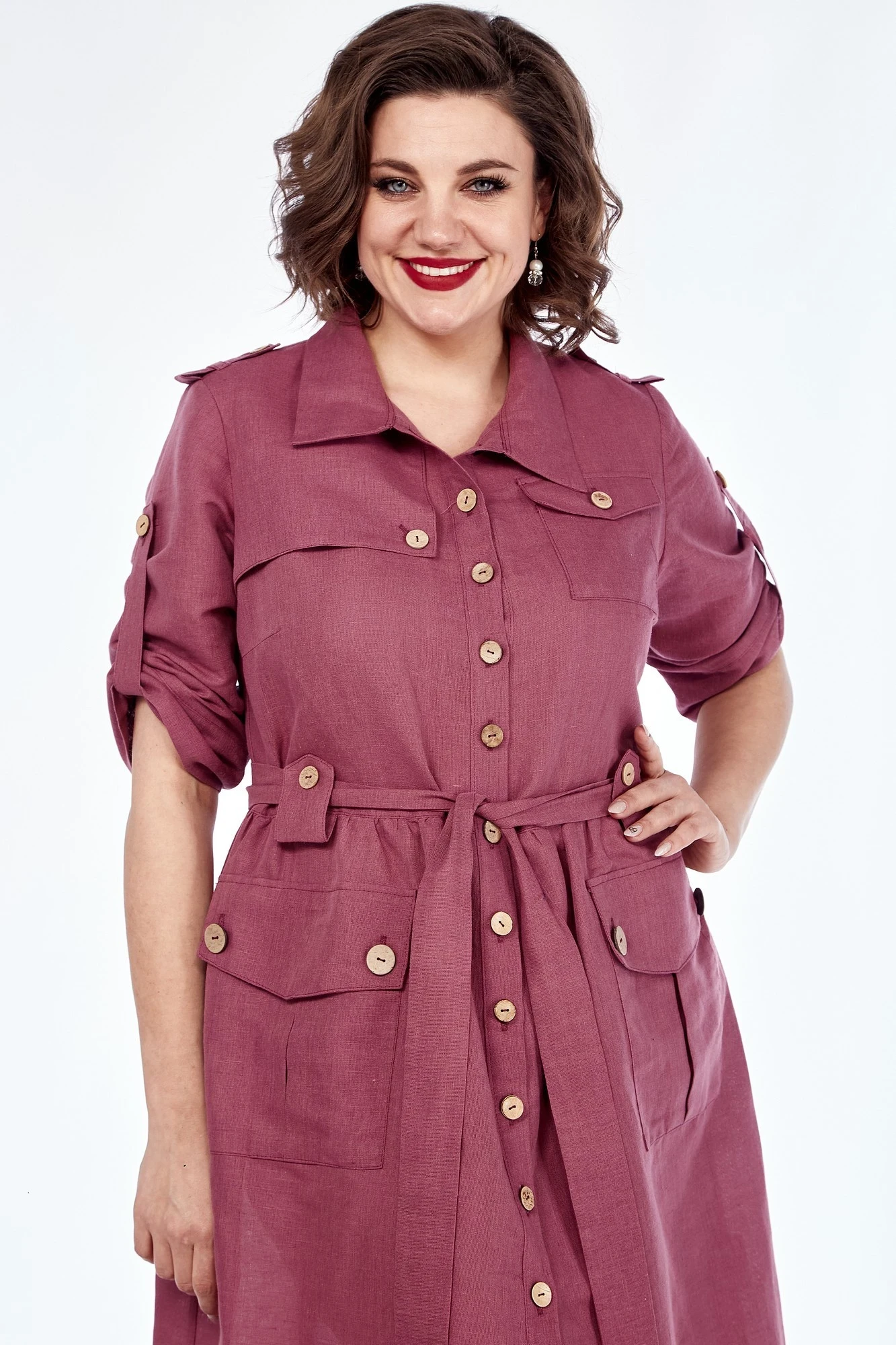 Платье выполнено из качественного белорусского льняного полотна (пр-во Орша). Ткань не тянется. Все пуговицы на платье натуральные кокосовые.