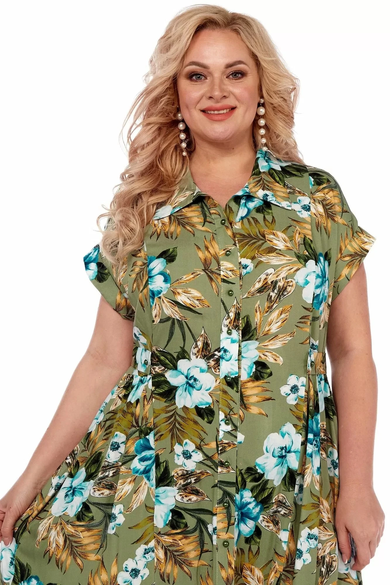 Платье выполнено из мягкой штапельной ткани устойчивой окраски. Рекомендуется вертикальная сушка.